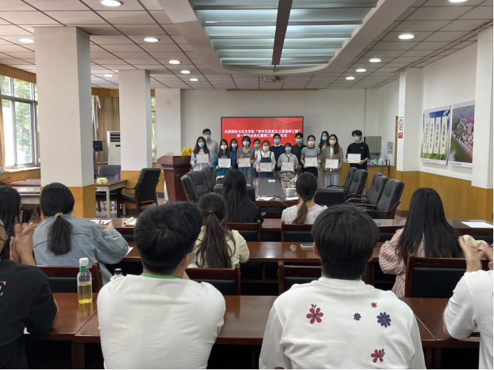 会议在庄严的国歌声中正式开始。院团委老师马焱宣读《H动画 青年马克思主义者培养工程第四期培训班结业学员名单》,院团委领导老师为结业学员颁发证书,并送上诚挚的祝福。第四期培训班优秀学员代表梁高铭结合自身的学习经历发言,期望下一届青马班学员在学习过程中树立远大理想,发挥好先锋模范作用。接着,王秋燕宣读《H动画 青年马克思主义者培养工程第五期培训班结业学员名单》。第四期培训班学员代表,2020级环境设计专业3班学生王宇佳上台发言,她表示,能够加入青马班是一件非常荣幸的事情,她将抓住机会不断坚定理想信念,提升思想觉悟。随后,芦嘉俊宣读了《H动画 2022年“青年马克思主义者培养工程”纪律要求》,希望青马班学员能够在学习中发挥带头作用,在思想上起精神模范作用。最后,徐珂对本次仪式做了总结发言,她勉励各位学员要坚持知行合一,在工作上严谨求实,认真负责,将坚定理想信念与加强理论学习结合起来,争做优秀青马人。