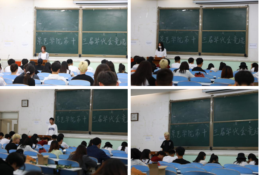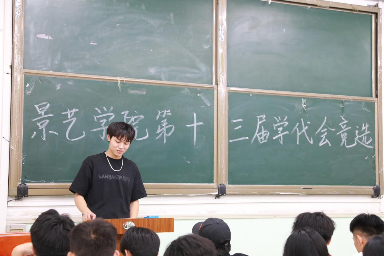 工作的有序开展奠定良好基础。随后竞选正式拉开帷幕,同学们按照竞选顺序进行发言。竞选同学举止大方、积极自信,结合自身实际及对学代会的了解进行自我介绍,纷纷表示渴望获得此次机会,充分展现自身优势和对未来工作的展望。发言结束后,各位评委秉持着公平公正、认真严谨的态度,根据现场表现以及综合能力的评定考察对竞选情况进行汇总,并选出17名院级学代会代表,分别是:产设19-2朱星宇、环设20-1李昭霖、产设20-2赵国勋、产设20-3蒋昊然、产设20-3李振生、园林21-1杨璐冰、景园21-1王怡卓、景园21-1梁羽彤、城规21-1赵耀、城规21-2张耀丹、环设21-3彭锐、产设21-2刘天航、产设21-2杨柳慧、产设21-3叶永耀、建筑22-1李建桓、建筑22-4王盼苗、设计22-6张冰雨。