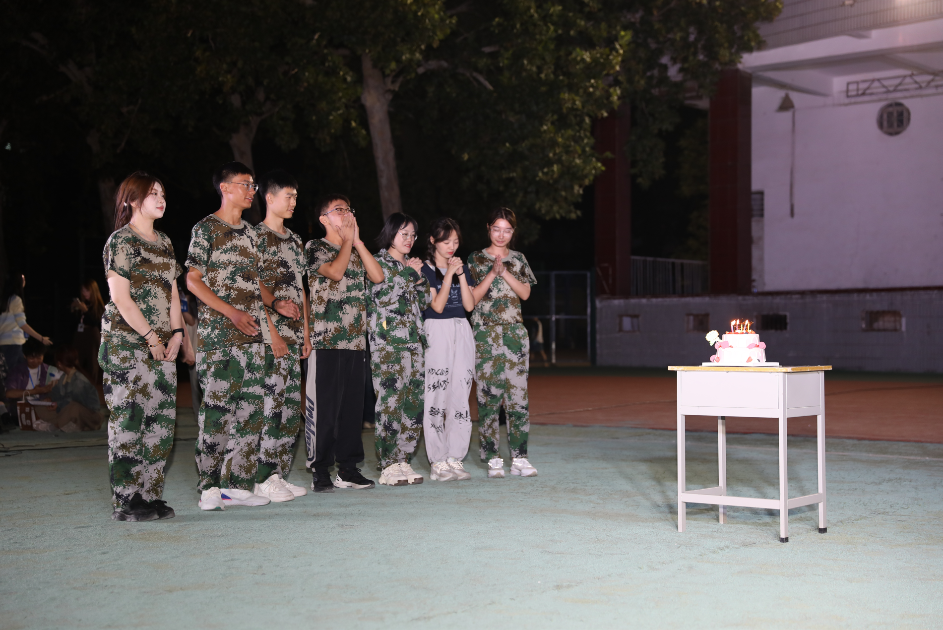 中场休息时,H动画为7名新生举办了一场别开生面的集体生日会,伴随着《生日快乐》歌曲节拍,寿星们在祝福声中许下生日愿望并吹灭蜡烛,他们畅谈军训感言并寄语大学生活。同学们纷纷上前送上独特有趣的生日祝福,大家在歌声中共同分享生日的喜悦,气氛温馨热烈。