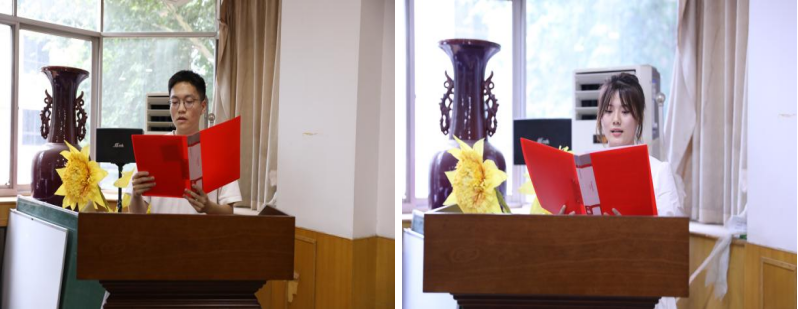 随后,史玥宣读了《H动画 青年马克思主义者第三期培训班学员名单》。2021级风景园林2班赵婷代表新一期青马班学员发言。她代表第三期青马班成员郑重承诺将进一步提高思想政治素质,做一名合格的社会主义事业接班人,努力成长为一名“有理想、善学习、讲道德、要自立、勇奋斗”的青年马克思主义者。