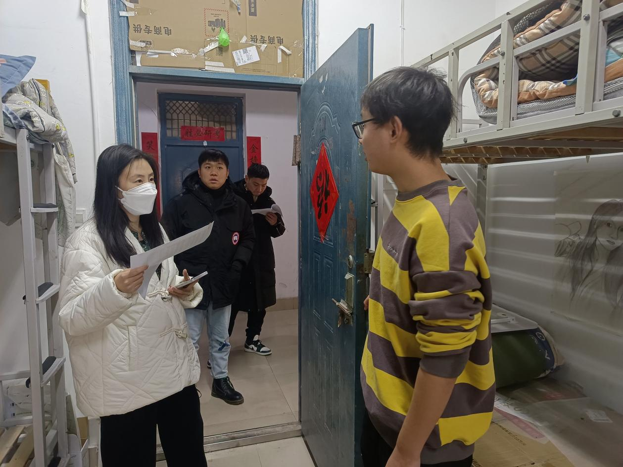 走访慰问的过程中,老师与学生们进行了亲切交流,仔细检查了学生宿舍的消防安全、基础设施、卫生环境、学习环境等,详细询问每位学生的离校方式和离校时间,叮嘱大家在离校期间遇到困难和问题及时向班主任、辅导员反馈并寻求帮助,严格执行学校的统一部署安排。同学们纷纷对老师们的关心表示感谢,积极与老师互动交流,认真听取老师的指导建议,并表示将做好安全有序离校的各项工作。