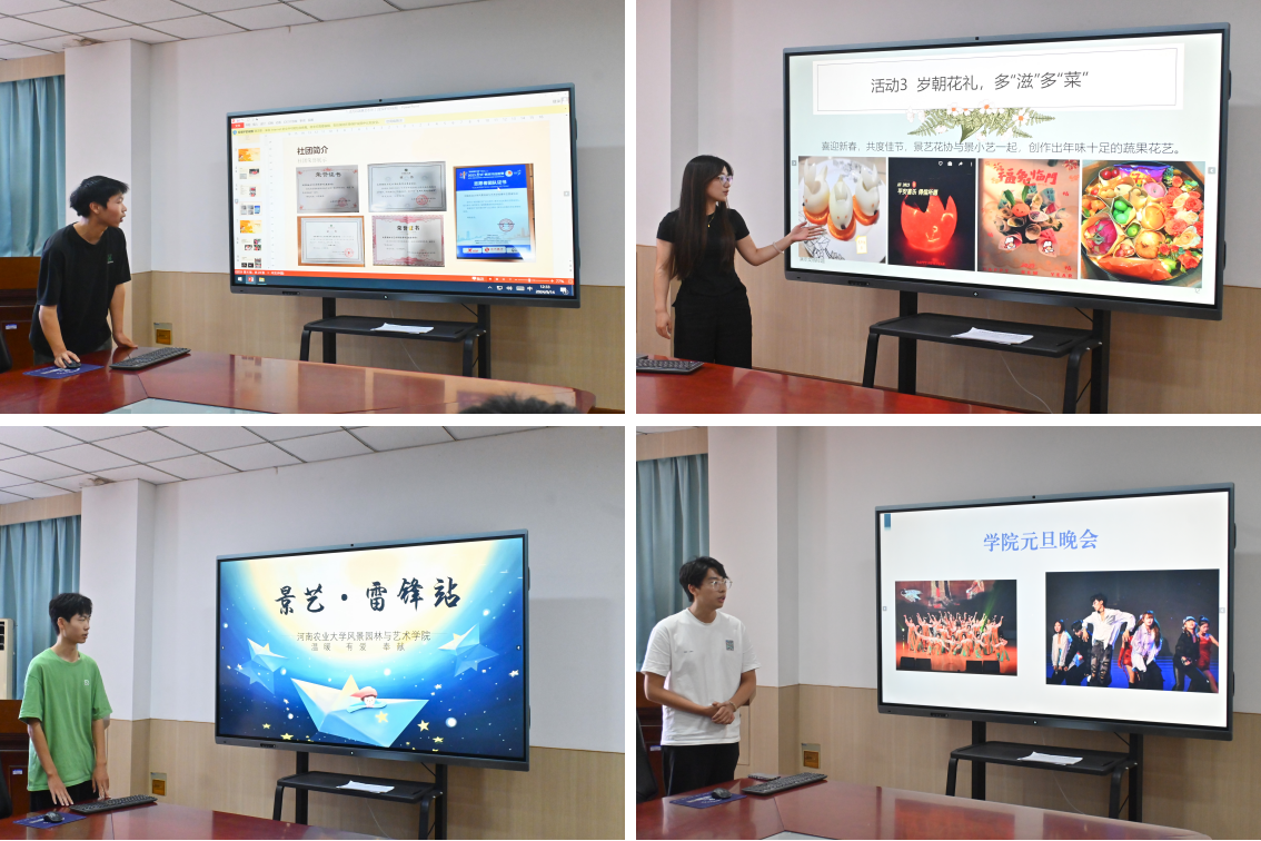 本次评选共有耕耘树艺、雷锋站、青年志愿者协会、心火支教、艺术团、花艺协会等6个社团前来参加,各社团分别采取现场汇报的形式,每位社团负责人结合本社团的特点和内容向在座的师生们进行PPT展示。经过激烈的角逐和公正的评选,多个社团凭借出色的表现、独特的社团文化和广泛的影响力脱颖而出。