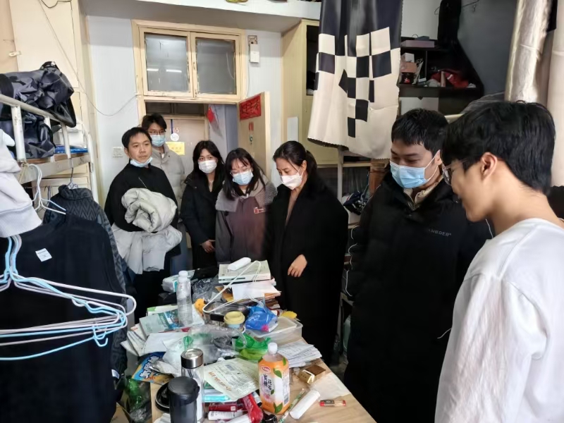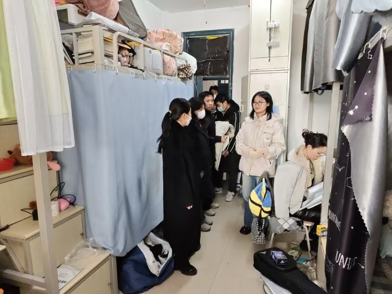 走访慰问的过程中,老师与学生们进行了亲切交流,仔细检查了学生宿舍的消防安全、基础设施、卫生环境、学习环境等,详细询问每位学生的离校方式和离校时间,叮嘱大家在离校期间遇到困难和问题及时向班主任、辅导员反馈并寻求帮助,严格执行学校的统一部署安排。同学们纷纷对老师们的关心表示感谢,积极与老师互动交流,认真听取老师的指导建议,并表示将做好安全有序离校的各项工作。