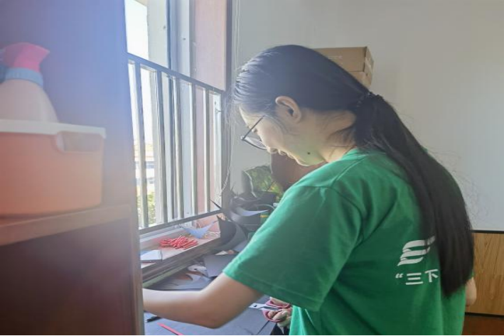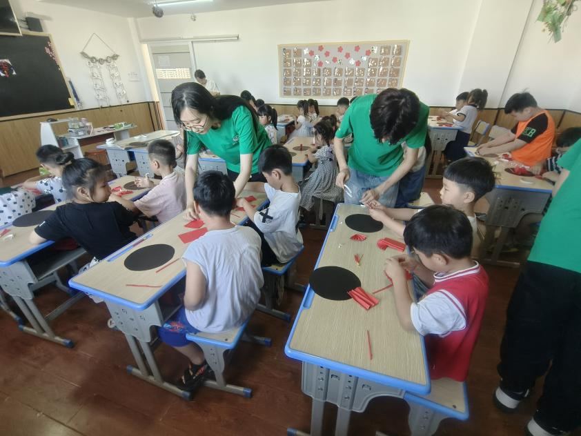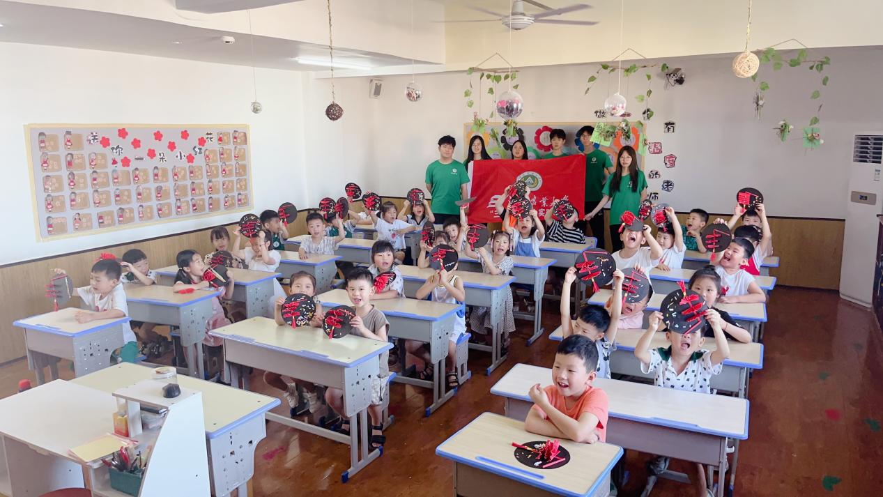 本次课堂的主题是“灯笼的手工制作”,团队成员先向孩子们讲解红色灯笼在中国传统文化中的寓意,带领他们了解中国传统文化知识内涵,接着团队成员用红色卡纸制作灯笼并逐步讲解,随后由孩子们动手实践,通过手工制作,孩子们亲身体会到了中国传统文化中具有的独特美感和寓意。课堂上,团队成员细心引导,积极互动,孩子们经过耐心制作,都完成了独属于自己的手工作品,脸上洋溢着快乐的笑容。
