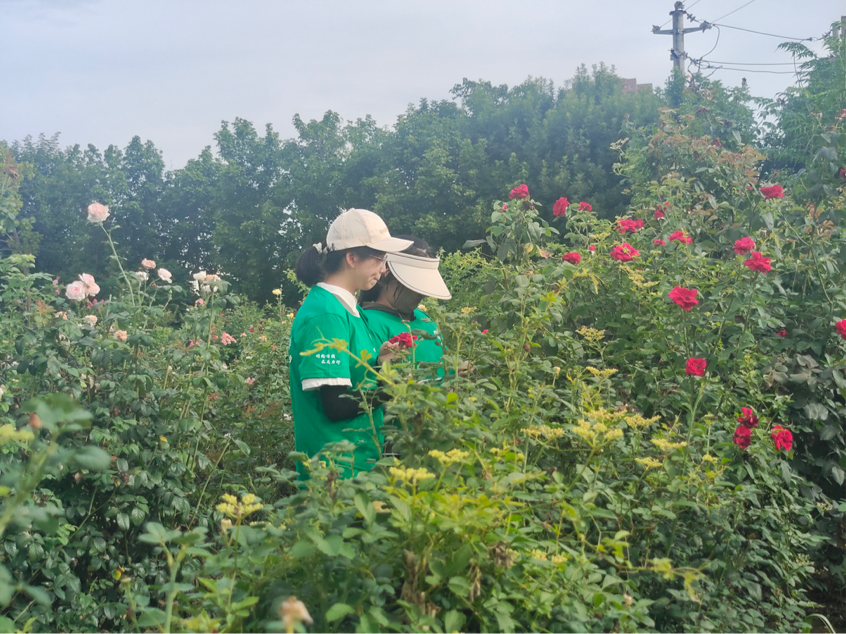 活动中,团队成员在园区工作人员的指导下有条不紊地开展植物学习实践活动,对部分月季进行梳整打理,并对各色月季的花型、品种、瓣茎和叶刺状态进行细致比对和详细记录。实践团队成员充分发挥其专业优势,全心投入、默契配合,坚持“受教育、长才干、作贡献”的宗旨,以实际行动投身农业建设,用无私奉献展示青春活力。