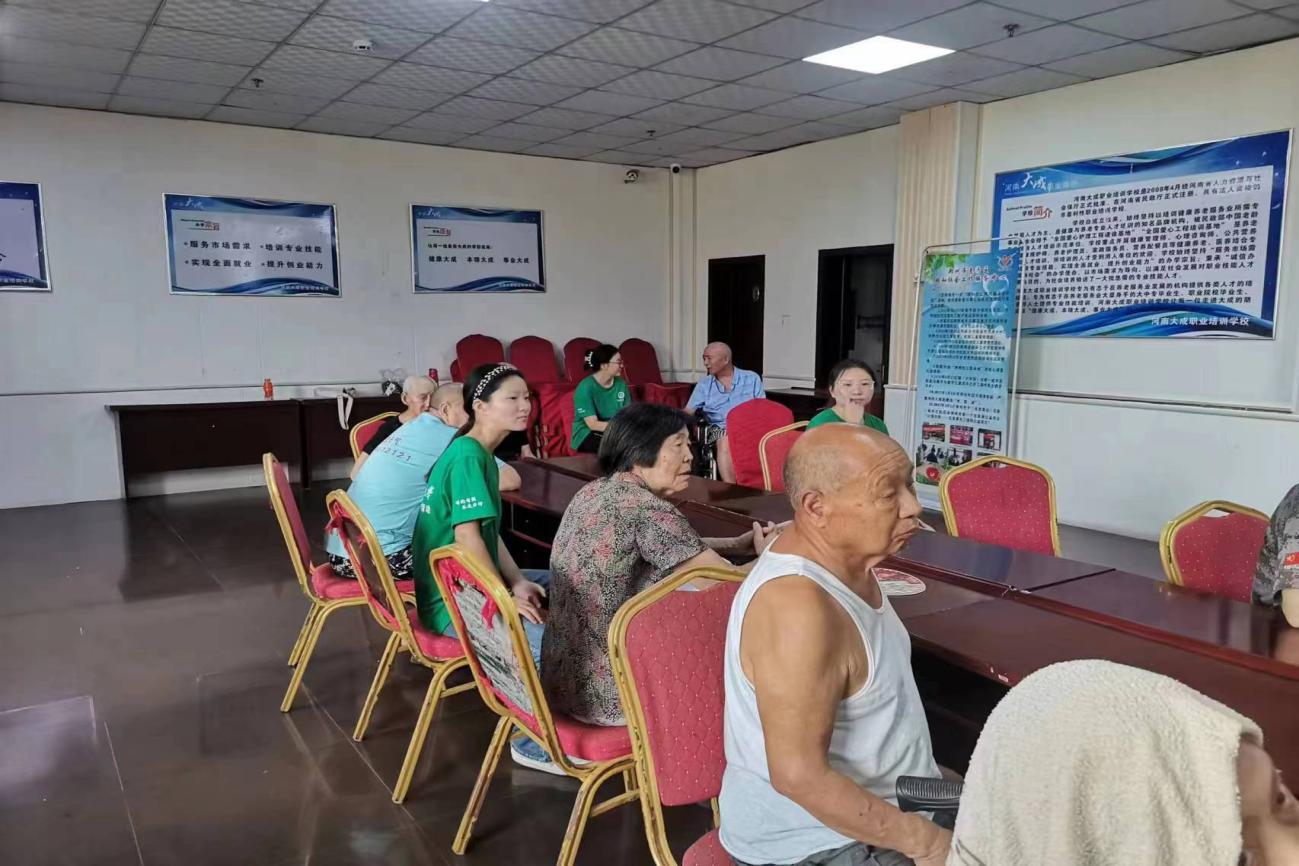 活动中,志愿者与老人亲密交谈,询问生活起居情况,聆听长辈成长故事,让老人感受到亲人般的关怀和温暖。在随后的象棋友谊赛中,双方切磋交流、欢声笑语、暖意融融,为平日清净的养老院带来了青春活力,让老人在比赛中获得了乐趣与陪伴的温暖。临别时,老人依依不舍地拉着志愿者的手,勉励志愿者们努力学习,早日成为国家的栋梁之才。