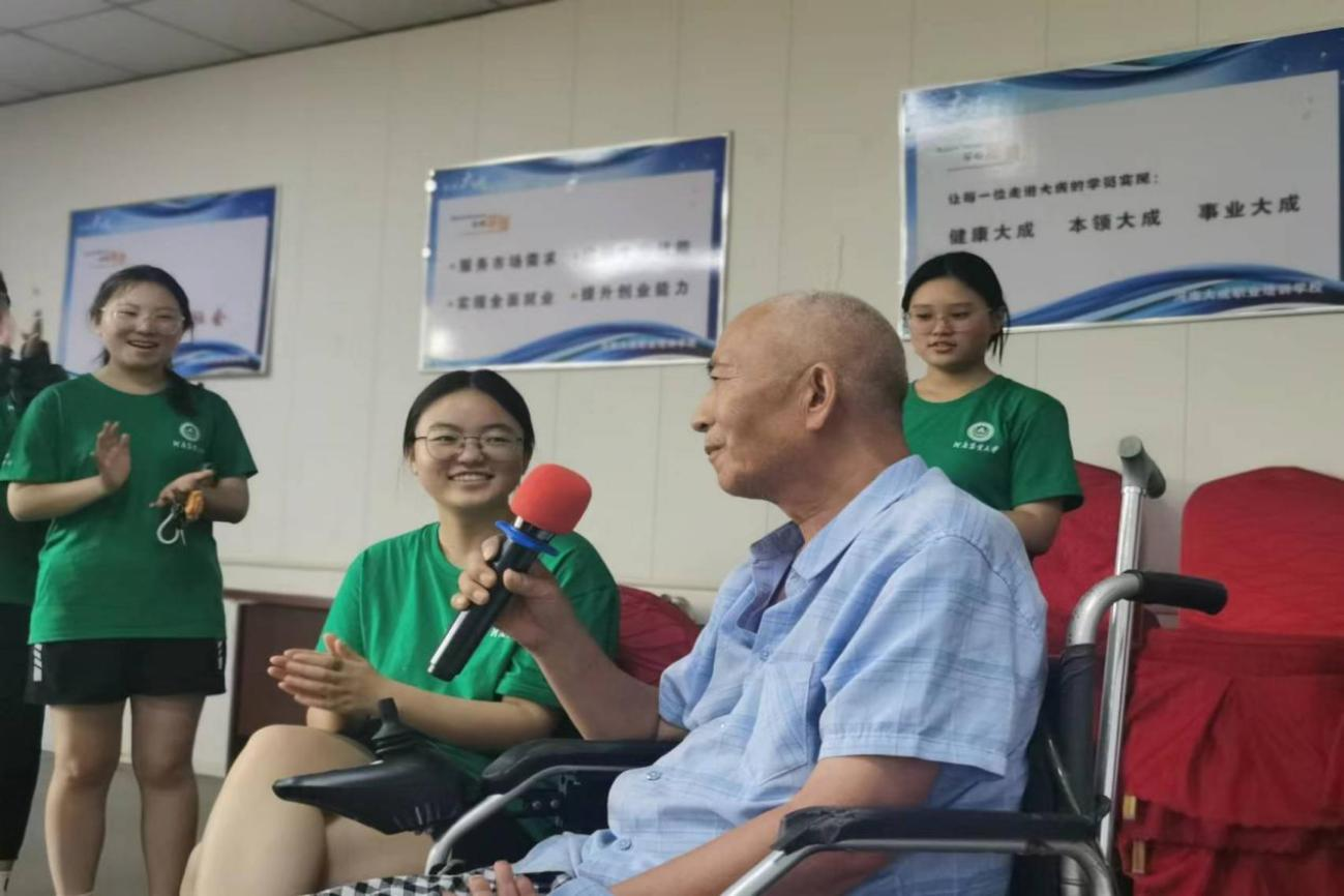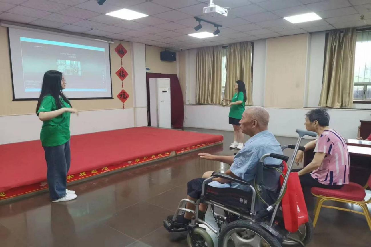 活动中,志愿者聆听老人成长故事、交流专业知识,带领老人们一同参与击鼓传花游戏、进行手势舞学习,大家有说有笑,气氛和谐,欢声笑语、暖意融融,现场处处洋溢着温馨祥和的氛围。分别之际,老人暖心祝福、依依不舍,嘱咐大家要努力学习,为国家建设多做贡献。