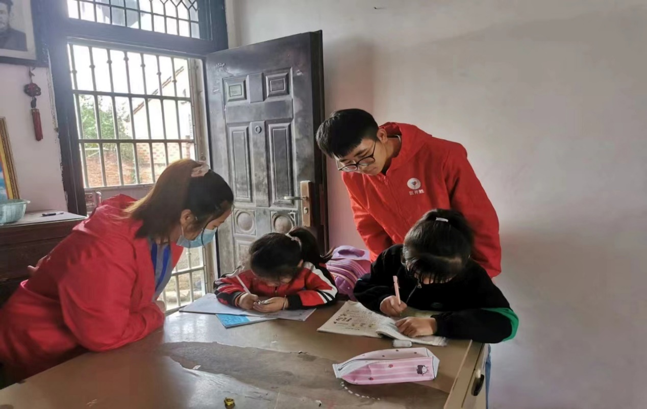 “五福临门”志愿者团队赴五星社区开展课业辅导活动。