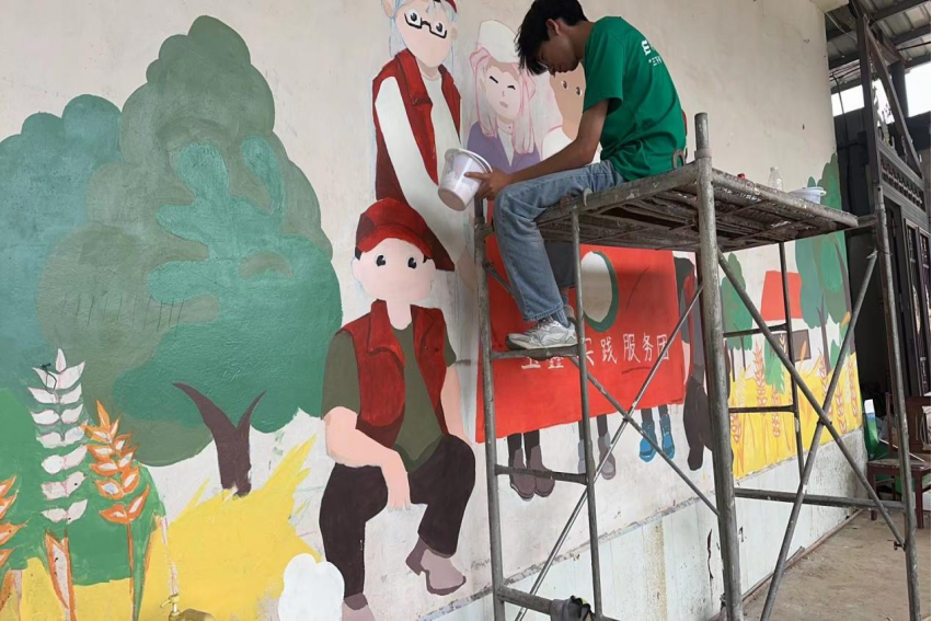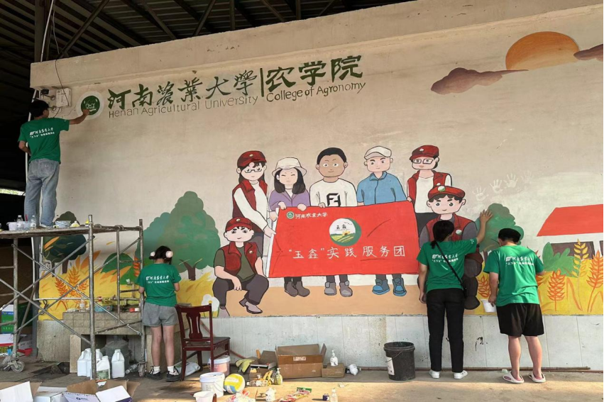 H动画 “艺农科技队”实践团赴河南许昌椹涧乡农H动画 开展墙绘活动(四)