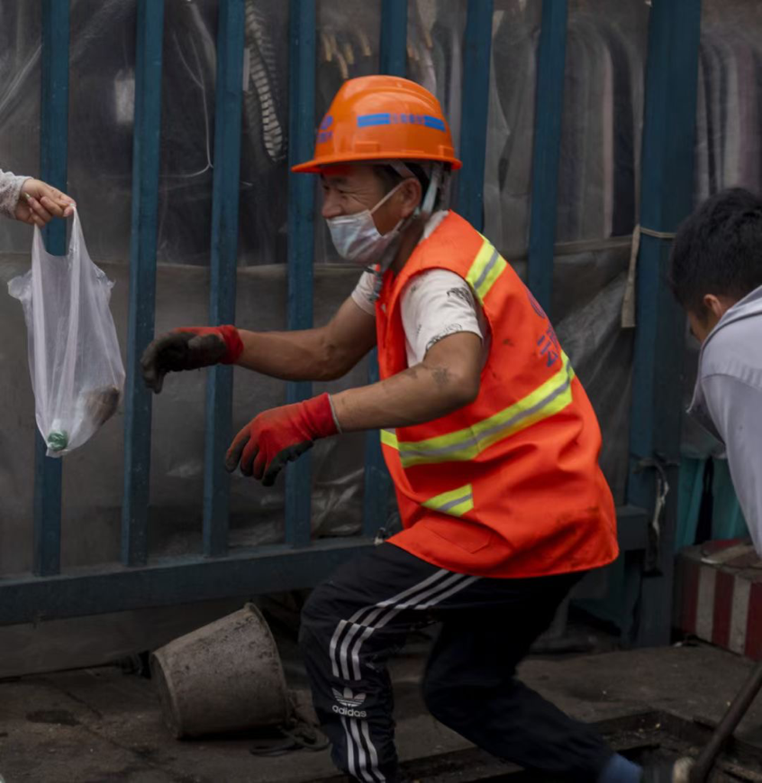活动中,成员们带着满心的热忱和关爱,穿梭在大街小巷,将早早准备好的水和食物送给劳动者们,现场氛围其乐融融。他们对成员们的到来表示欣喜和感激,随着彼此的深入交流,劳动者们脸上绽放出灿烂的笑容,成员们的心也被温暖填满。