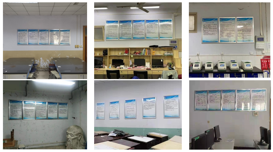 为进一步规范和加强中心实验室制度建设和运行机制,规范实验室各项管理,更好地发挥实验室服务全院师生的作用,中心实验室要求各实验室完善各项规章管理制度,并于2021年6月2日对完善后的实验室制度进行了统一安装,实现了本科教学实验室、科研实验室、制图室、画室、机房等各场所 “制度上墙全覆盖”的目标。通过此次制度更新,督促各实验人员要始终保持高度的责任心和事业心,守好实验室安全底线,确保教书育人、科学研究、社会服务平安有序地进行。