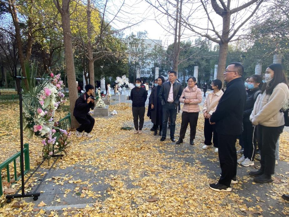 走近牧医广场,伴着小雪天气的丝丝寒意,阵阵沁心花香扑鼻而来,各种插花作品令人眼前一亮。参展作品以展现季节交替之美为主题,将审美教育与专业课程相融合。活动前期,同学们充分发挥艺术想象力,精心构思,将专业知识与实践操作相融合,对各种废旧材料加以利用,将多种花材修剪、整枝,根据不同的色彩、形状有层次地搭配在一起,将绿色可持续发展的设计理念融入学习实践中。学生现场制作并展出了色彩艳丽、造型独特、创意新颖的插花作品共6件。作品《张狂》由绚丽的黄色色系组合,花瓣富有张力,线条不羁、大胆肆意、坚实有力,在明亮而灿烂的底色上构成不同的色调与气势,把朵朵向日葵表现的动人心弦;作品《爱丽丝漫游仙境》柔美的锦缎之中点缀珍珠,用柔软的纱布包裹缠绕成绚丽多姿的花朵,借助不同材料的不同质感将梦幻之美带入现实;作品《花间一壶酒》独具创意,运用大大小小、不同层次的花朵将水流倾泻之态淋漓尽致的表现出来。此次展览迎来学校广大师生驻足观赏。