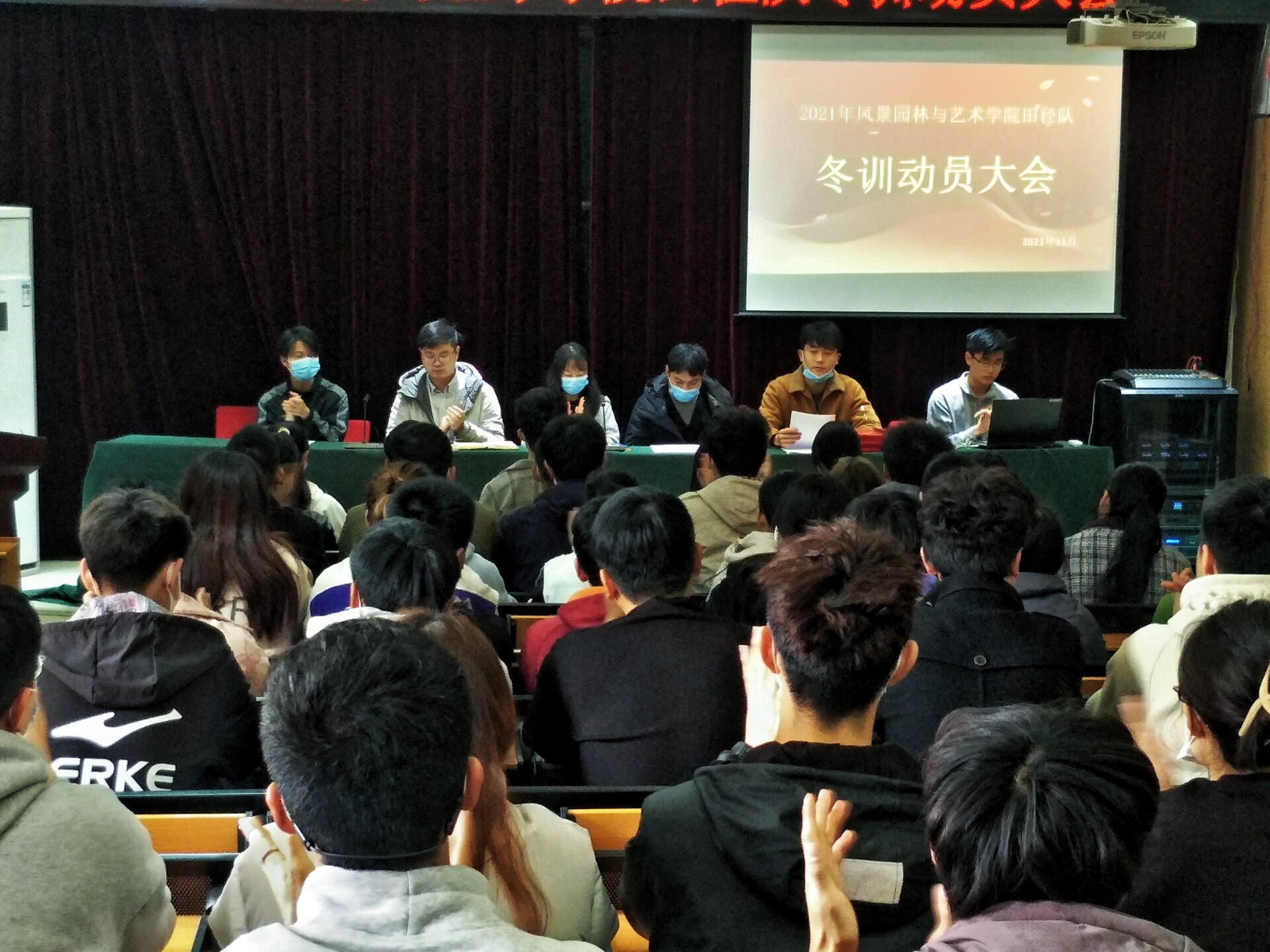 田径队冬训动员大会。院团委老师史玥、马焱、芦嘉俊出席会议,院学生会主要成员及全体田径队队员参加会议,本次会议由院体工委主席李黎主持。