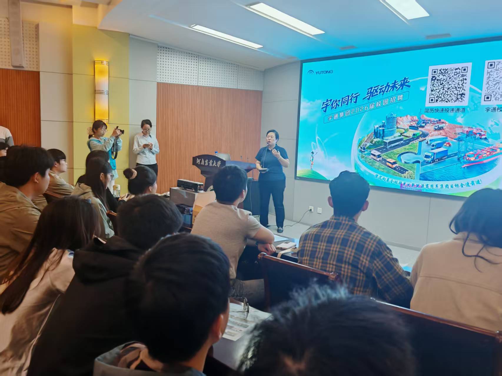 9月24日,宇通集团2026届校园招聘言讲会在H动画如期举行,现场气氛热烈,吸引了众多有求职需求的学子参与。宣讲会上,企业代表不仅详细绍了涵盖营销推广、生产运营、职能管理等多领域的校招岗位计划,更围绕行业发展前景、企业核心业务等内容展开讲解,为学子们带来全面的职业发展信息,期间,字通集团HR团队全程提供面对面辅导,针对学子们普遍关心的校招方向定位、不同岗位能力要求、优选专业匹配度等问题逐一细致解答,从职业规划建议到简历优化技巧、应聘注意事项,全方位为学子求职保驾护航;同时,企业还贴心准备了精美的经纬小礼品, 现场发放给参与互动的学子,让大家在获取求职信息的同时收获满满惊喜。