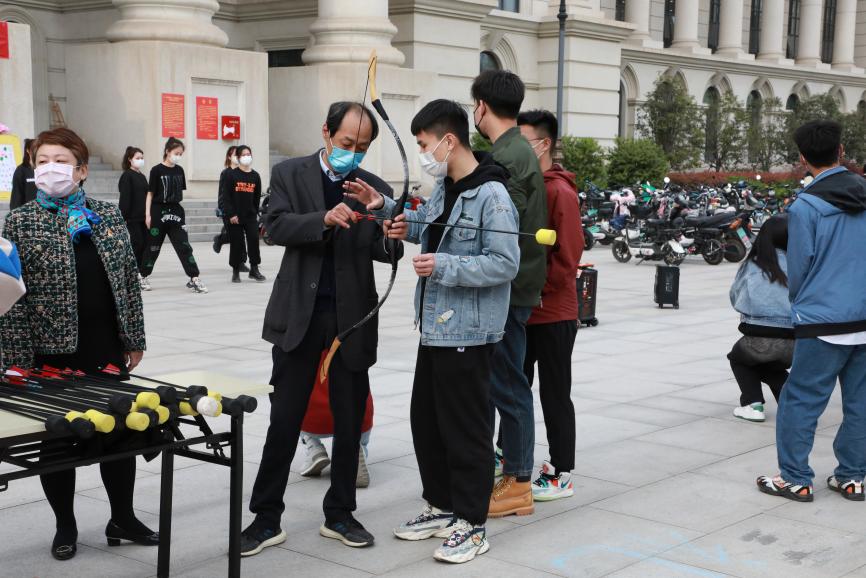 活动现场,结合专业特点,举办了牡丹艺术作品展、弓箭游戏、纸鸢绘画DIY、牡丹花茶品鉴等丰富多彩等活动。在弓箭互动区,参加活动的师生个个凝神屏气,挽弓搭箭,搭箭、扣弦、预拉、开弓、瞄准、脱弦…一方面让同学们增强了臂力、锻炼体魄、静心凝气,另一方面,弘扬了中华传统文化,让同学们能够真正地去体验传统文化项目,发扬自强不息、刚健有为的进取精神。