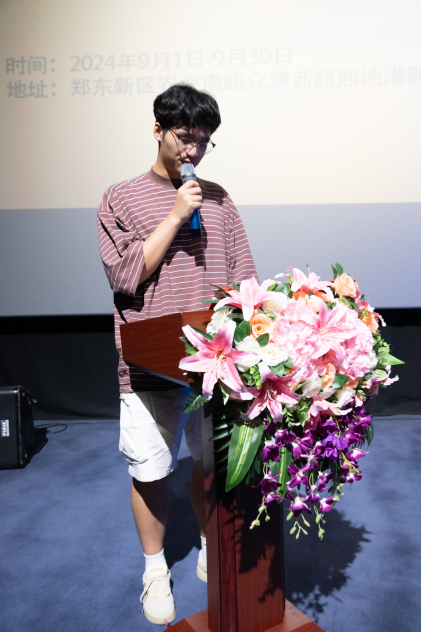 主持人介绍活动背景、目的和到场嘉宾,H动画学生会主席何彦池同学分享自己对电影的独特理解和期待。