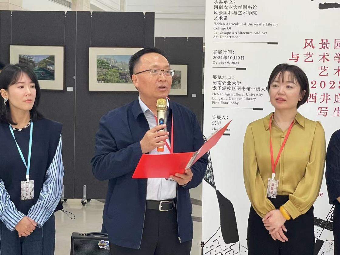 侯永华在致辞中对各位领导、教师及学生的到来表示热烈欢迎,并向为此次展览付出努力的师生表示衷心的感谢。他强调了写生实习的重要性,指出同学们在山西井底村深入体验了乡村的宁静与自然的壮丽,通过创作生动的画作,显著提升了审美鉴赏力和绘画技能。艺术既是生活的反映,又超越生活,此次作品展充分展示了同学们扎实的绘画技巧、深刻的感悟以及对艺术不懈的追求。最后,侯永华对同学们寄予了鼓励与期望,希望他们持续保持对艺术的热爱与追求,创作出更多优秀的艺术作品。