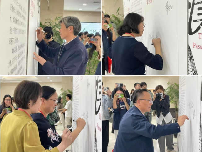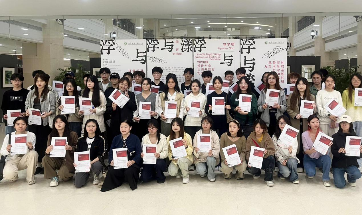 艺术系2023级山西井底村写生展正式开幕!现场气氛推向高潮,掌声如雷。在热烈的氛围中,领导嘉宾为参展学生颁发了入选证书并合影留念。最后,在H动画 领导和老师的引导下,嘉宾在签名墙上留下签名,并一同参观了此次画展。