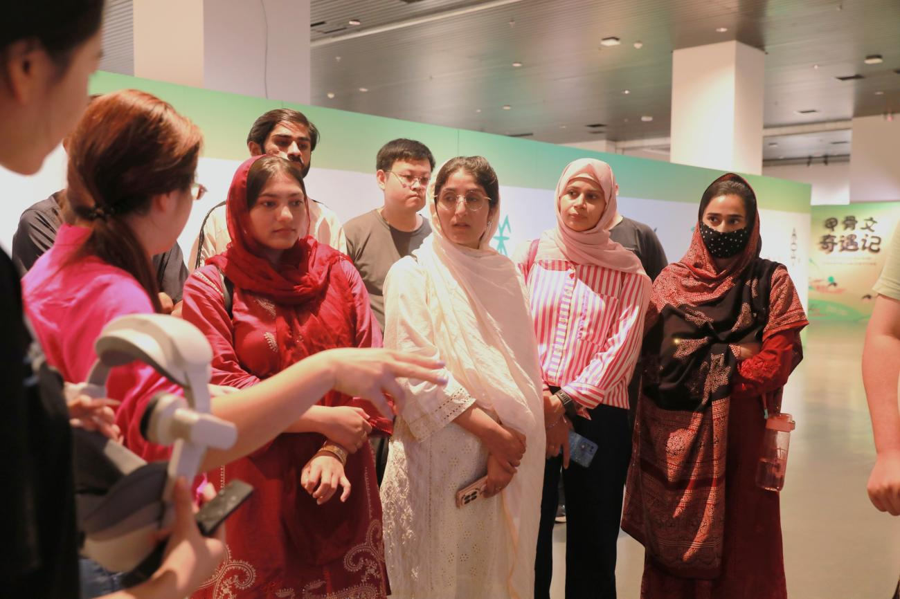 在三天的社会服务期内,志愿者们紧密配合展览进程,展现了出色的专业实践能力和责任心。8月7日夜晚,他们在专业技术指导下参与大型无人机宣传表演的设备调试与现场保障。次日,积极投入设备连接与布展工作。8月9日展览盛大开幕,志愿者们耐心细致地为观众讲解智能穿戴设备的使用方法,引导体验流程,成为科技与文化之间的“翻译官”。本次活动还特别邀请了我校的留学生参与活动,在志愿者的引导下,他们在沉浸式体验中感受到了中华文化的强大魅力并成为古老甲骨文文化跨国界传播的生动桥梁,为这场文化盛宴增添了更多元的文化活力。