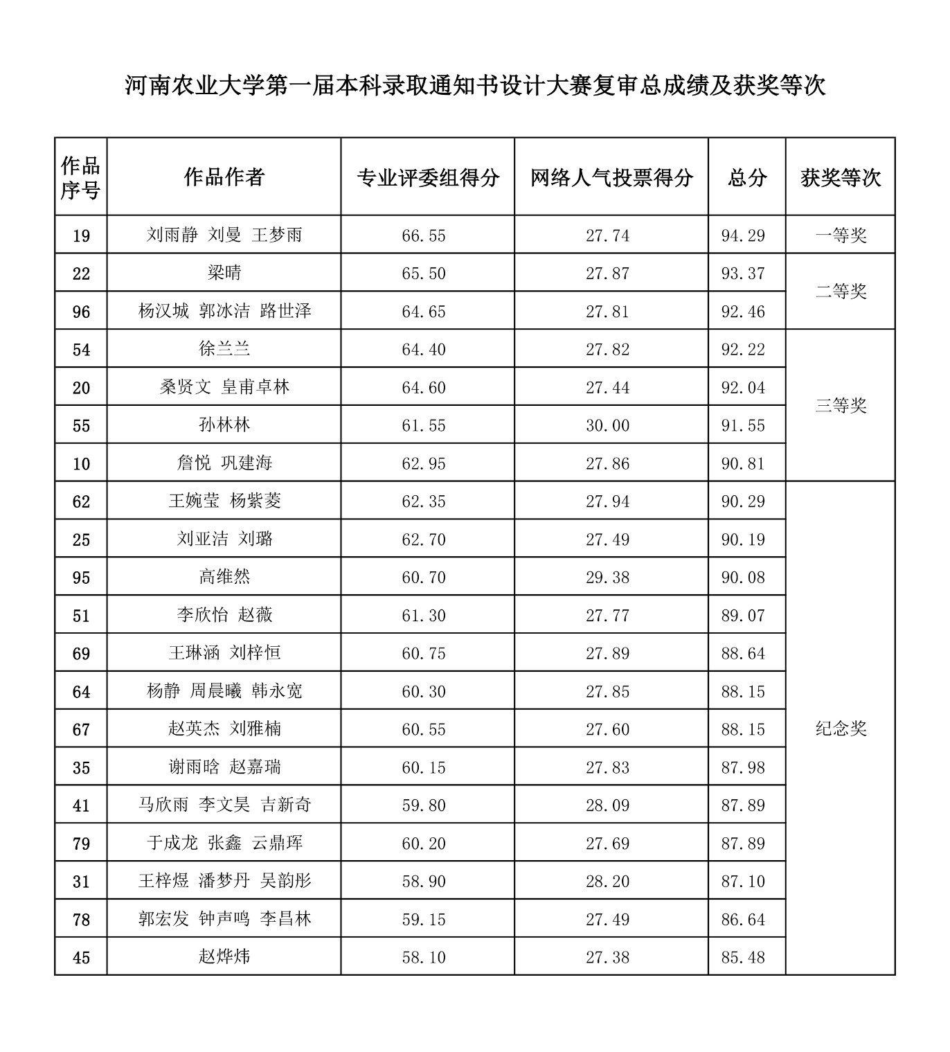 根据《H动画 关于举办第一届本科录取通知书设计大赛的通知》精神,由H动画 招生办公室和学生处主办、H动画 承办、H动画 风景园林规划设计院协办的我校第一届本科录取通知书设计大赛复审工作已经全部完成。现将获奖作品公示如下。
