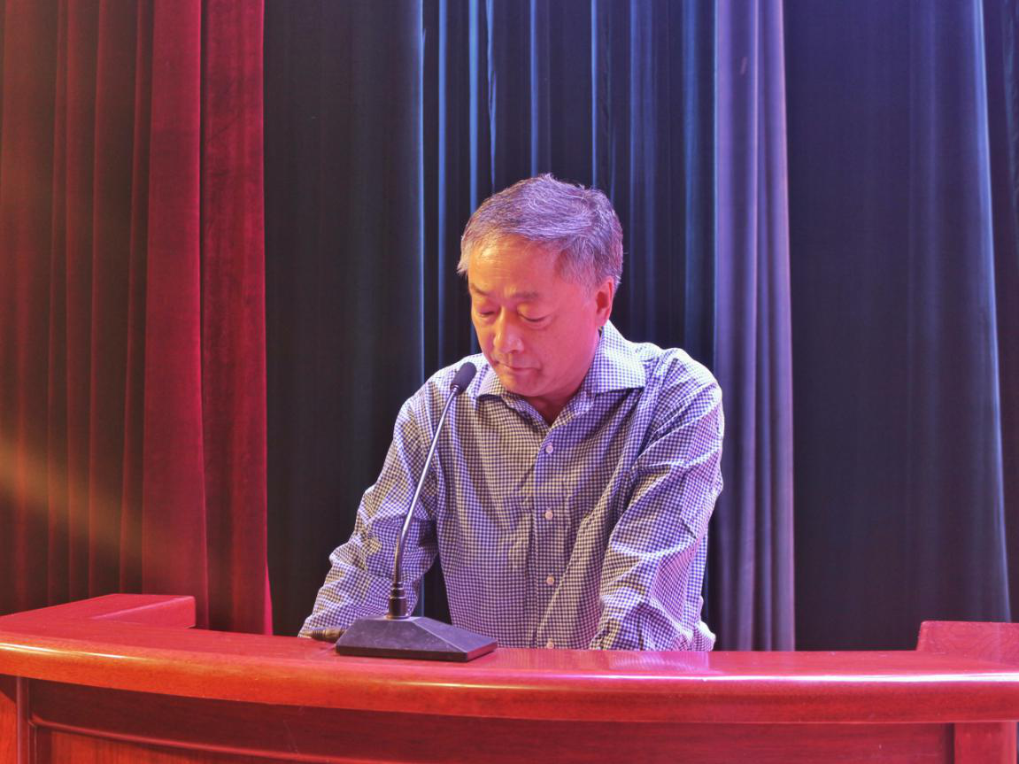 艺术系副主任孟滨教授作为教师代表发言。他结合自身多年的教学、育人经验,建议新生做好大学四年规划,多从书籍中涉略知识,拔高自己并汲取持续前进的动力,不断坚定对实现中华民族伟大复兴中国梦的信心。