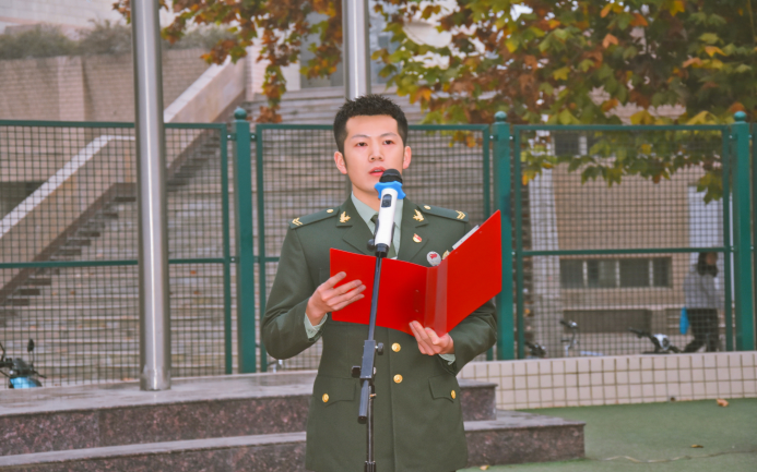 7时整,升旗仪式正式开始。国旗护卫队迎着朝阳、踏着铿锵有力的步伐迈向升旗台,全体师生庄严肃立,向国旗行注目礼,在激昂的《义勇军进行曲》中,鲜艳的五星红旗迎风招展、冉冉升起。院党委书记侯永华发表讲话,他强调,回顾历史长河,无数英雄为中华民族伟大复兴而慷慨就义,以生命为代价,换来中华儿女今天的美好生活。处在中国特色社会主义新时代中,站在“十四五”新的历史起点上,全体景艺人应精神抖擞、整装待发,势必以全新的面貌、昂扬的姿态迎接新的困难、攻破新的挑战,展现出H动画 的风采,为H动画 发展创造出新的奇迹。随后,学生代表2019级环境设计1班王晨光同学,作为一名在校参军入伍的大学生,作为新时代的青年,他表示景艺人应该树立远大的理想,立鸿鹄之志,坚定信念,不断开拓进取,补足精神之“钙”,为祖国更美好的明天而奋斗,把握现在,展望未来。最后全体师生合唱《红旗飘飘》。