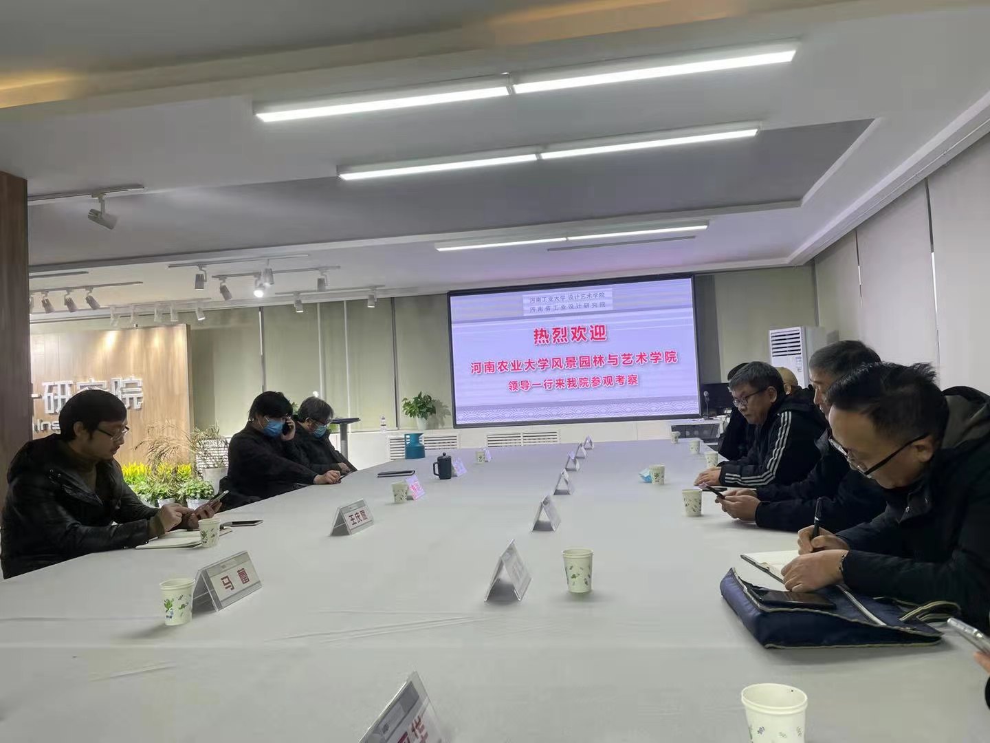 河南工业大学设计艺术H动画 院长王庆斌院长陪同H动画领导及艺术系教师参观其H动画 各专业工作室、设计研究院和H动画 展厅,介绍了视觉传达、信息技术设计、交通工具设计、文化与产品设计及新产品系统设计等相关专业的发展情况。H动画领导、老师对设计艺术H动画 的发展和做出的成绩给予充分的肯定和赞赏,并详细介绍了H动画的发展历史、教学科研成果和人才培养等。