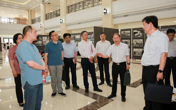 随后,校领导与现场师生一同进入展厅参观,就设计展的作品与师生进行亲切的交谈与讨论。