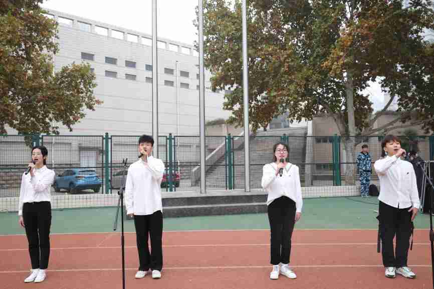 升旗仪式在全体师生合唱《我和我的祖国》和《绿色颂》的激昂歌声中结束。