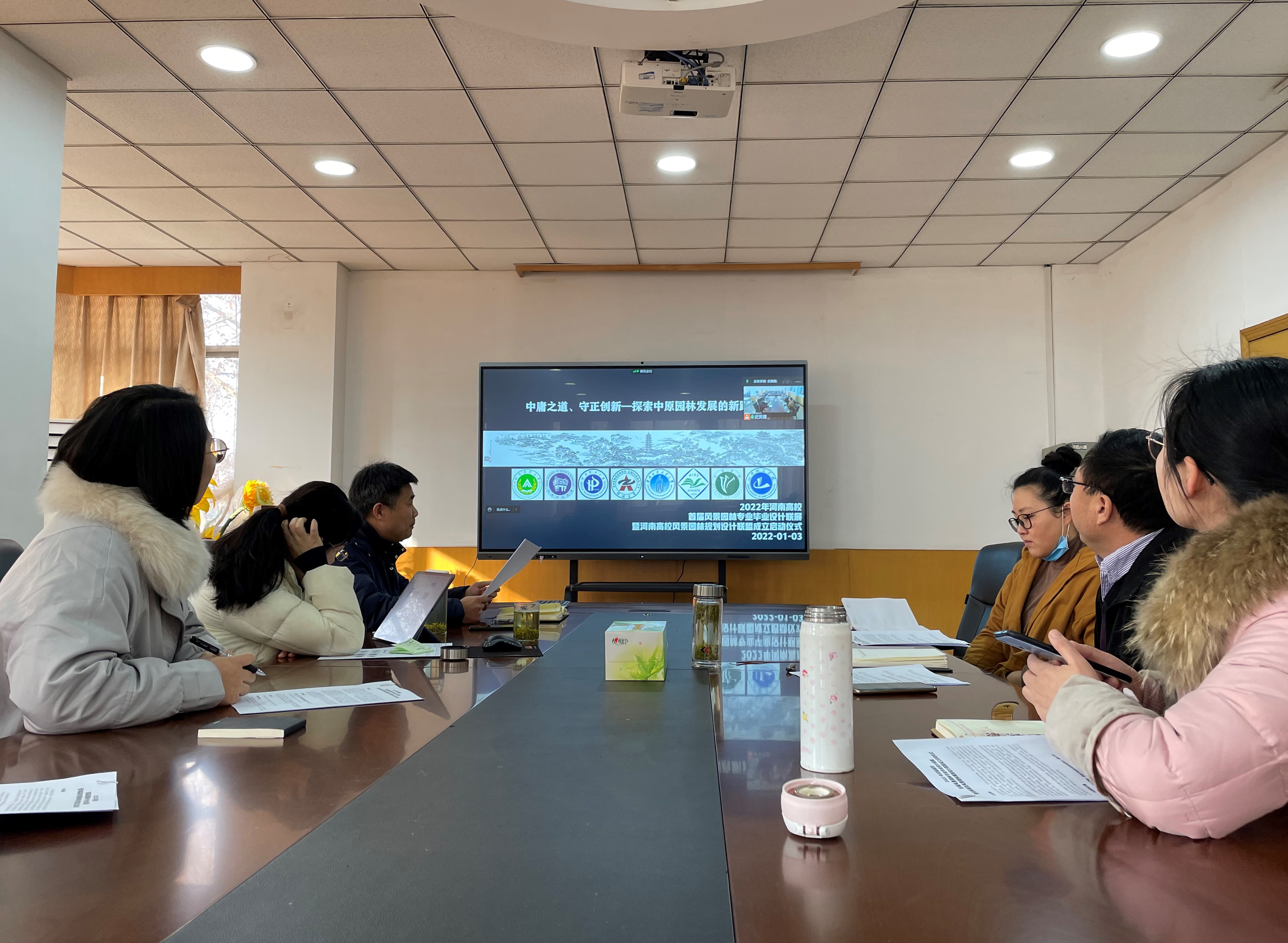 刘保国就2022年首届河南省高校风景园林专业毕业设计联展准备工作进行了系统介绍,联展主题为“中庸之道、守正创新——探索中原园林发展的新路径”;八所高校的风景园林专业负责人就毕业设计联展的时间节点、主题内容、设计深度、评选规则及办法等具体内容进行了深入讨论;李永华对大会进行了总结,以2022年河南高校首届风景园林专业毕业设计联展为契机,联合河南高校及知名企业举办学术交流会议及产教融合论坛,以期推动河南省风景园林事业的发展。
