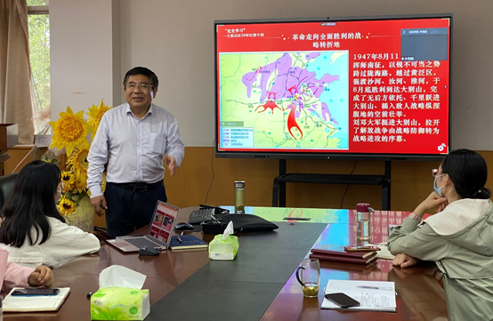 孔教授结合影像史料讲述了大别山区28年红旗不倒的源流,通过介绍鄂豫皖边区的第一个党支部、黄麻起义、新四军第五师的成立和革命走向全面胜利的战略转折等,使大家深刻了解到红色大别山、英雄万万千的历史壮举,最后以“坚守信念、胸怀全局、团结一心、勇当前锋” 的大别山精神鼓舞师生奋力逐梦前行,不断书写新时代的精彩画卷。报告结束后,风景园林系教工党员和学生党员互留联系方式,进行结对共建。