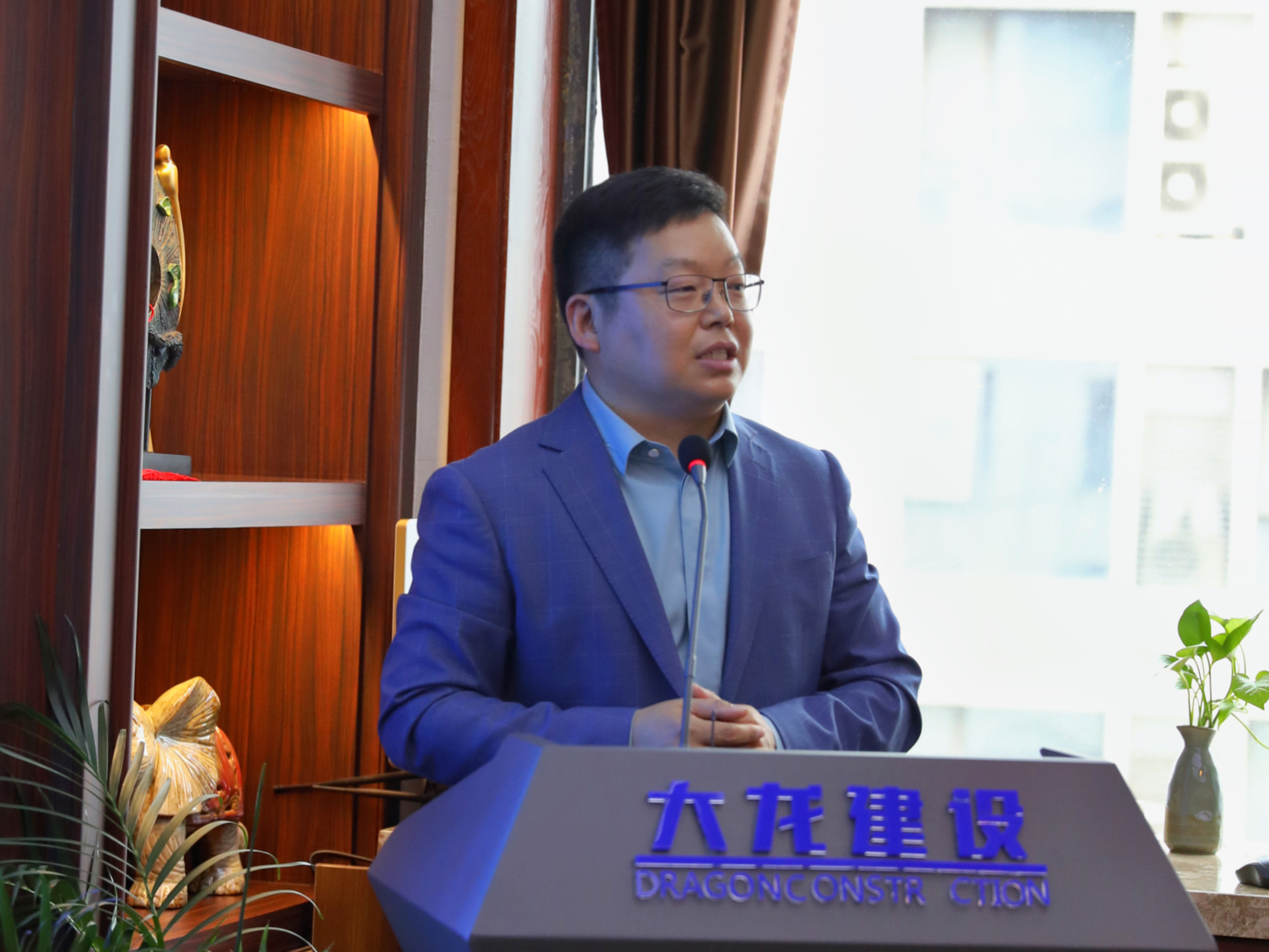 韩国想对魏蒙关一行的到来表示热烈欢迎,对母校长期以来对公司发展给予的关心与支持表示衷心感谢。他详细介绍了大龙建设公司的发展历程、主营业务、组织架构、企业优势等具体情况。通过项目预算、设计方案、项目成效、全景视频等方式全方位展示了公司重点项目建设成果,并对公司未来发展作了具体规划设想。他指出,母校办学历史悠久、科研优势突出,后续希望校企双方在专业实习、产教融合、协同育人及成果转化等重点领域开展更为深入的合作与交流。同时也欢迎母校优秀毕业生到大龙建设公司实习和就业,公司将为其提供良好的工作环境和广阔的发展平台。