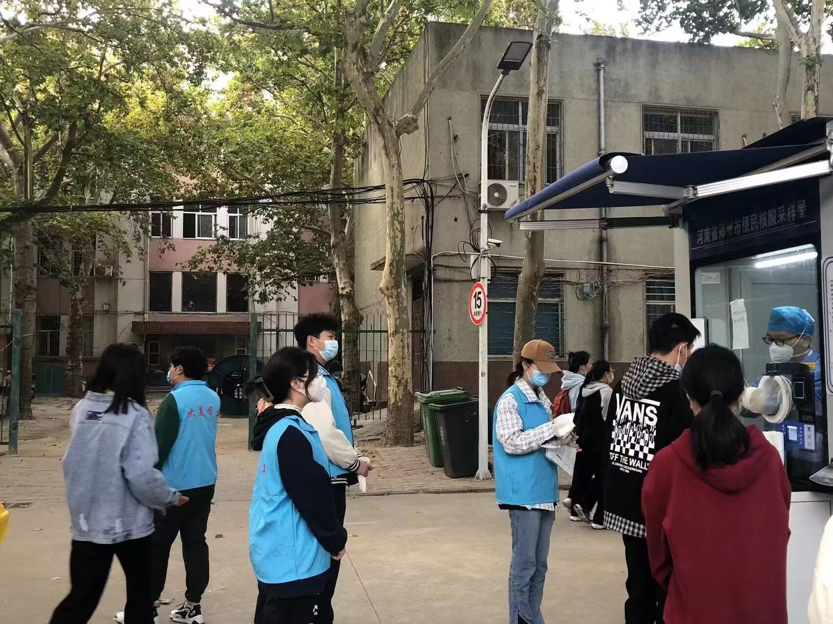 为进一步凝聚H动画青年志愿者力量,为师生提供安全、稳定、有序的校园环境,H动画师生志愿者于10月25日再次前往文化路校区核酸检测采样点开展志愿服务活动与校园巡逻工作。院党委副书记赵九阳,院团委老师芦嘉俊深入核酸检测现场,亲切慰问了志愿者们。