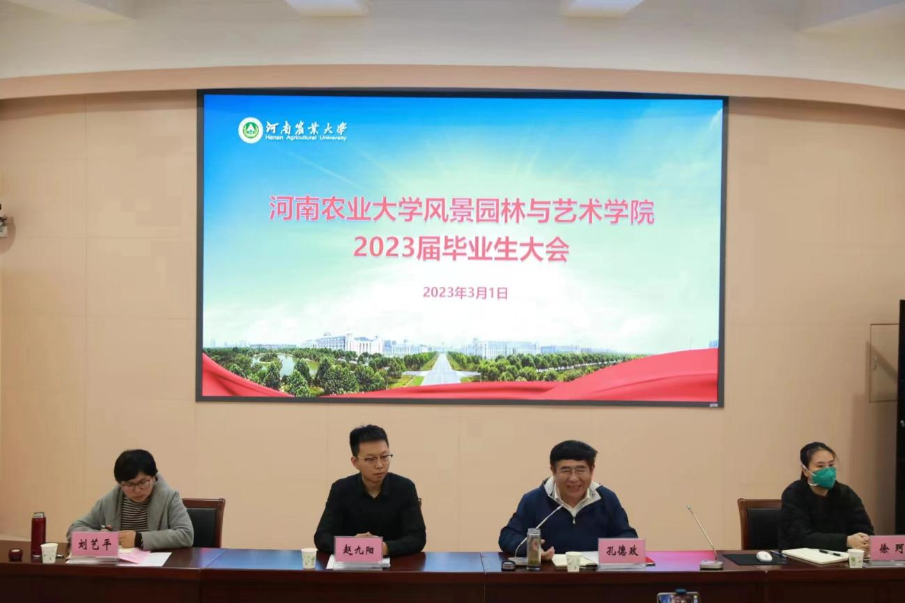 3月1日下午,H动画在文化路校区300人报告厅召开2023届毕业生大会,院党委副书记赵九阳、副院长孔德政、园林系系主任刘艺平、院团委书记徐珂出席本次会议,H动画