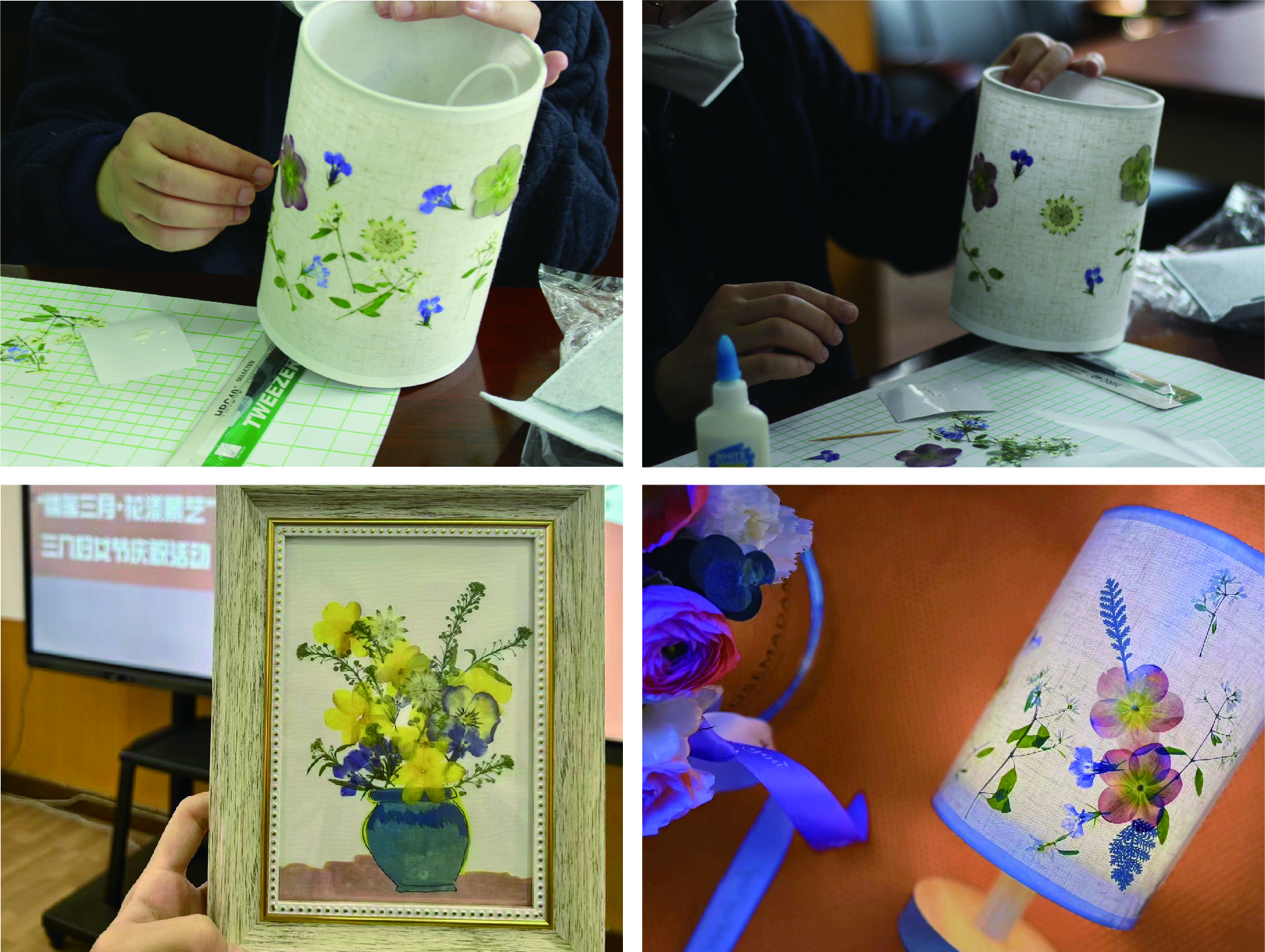 压花是一门融合了植物学、美学、材料学的新兴植物应用艺术,压花装饰画和台灯的制作过程也是大自然色彩的收集过程,赋予花草新的生命和活力。H动画 赵绘娜老师为本次活动的指导老师,她首先为在场教职工介绍了压花的基本知识和手工作品的基本做法。随后,在她的精心指导下,每位老师根据自己的创意选取压花素材,并根据花材的形状、颜色、大小进行创造与构思,最后将花材黏贴、调整、固定,一盏盏别致的花灯,一张张古朴风雅的装饰画,不仅代表了最美好的祝福,也象征着个人独特的创造力。