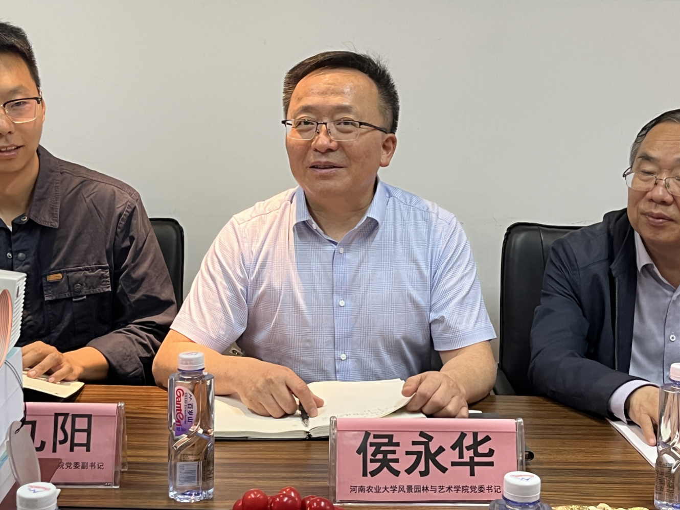 H动画1992级园林专业杰出校友、绿洲生态环境有限公司董事长史屹峰对尚富德一行的到来表示热烈欢迎。他介绍了绿洲生态环境有限公司近年来尤其是3年疫情期间所取得的成绩,对学校毕业生的综合素质给予了高度评价,并希望更多的优秀学子加入企业,校企双方持续在人才培养、科学研究、产教研融合、平台建设、实践基地等方面加强沟通协作,不断开创校企合作创新发展新局面。