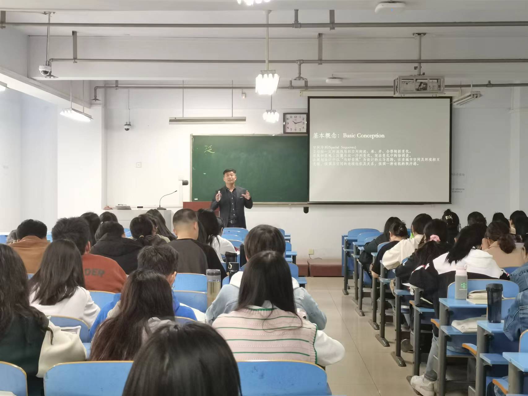 课堂开始,刘老师让学生结合刚结束的综合实习思考并回答“什么是空间序列及在园林中见到过哪些空间序列?”,以一个问题引出本堂课的教学重点。随后刘老师通过多媒体和板书的教学方式,结合理论知识与经典案例,给大家展示了一堂精彩纷呈的专业课。通过精妙的问题设计,刘老师将本节课的内容通过让同学们身临其境的思考、师生频频互动的形式讲授呈现。课堂上学生和青年教师一直紧跟刘老师的节奏,或听课、或记笔记、或认真思考。整堂课设计精妙、衔接流畅、娓娓道来,课堂板书内容精练、规范美观。刘老师的讲授方式更是潜移默化地影响着学生和观摩教师。