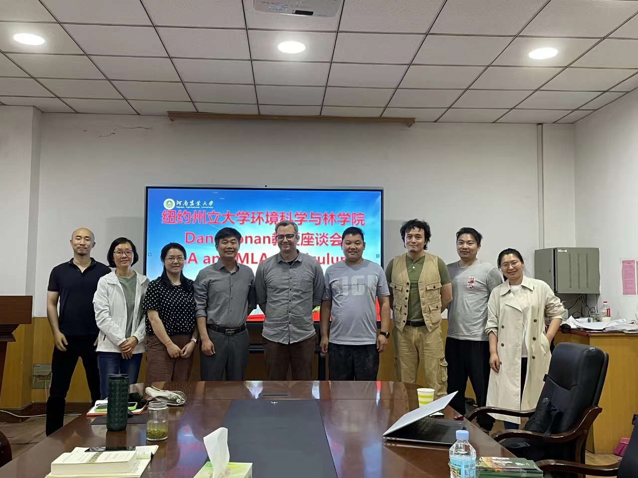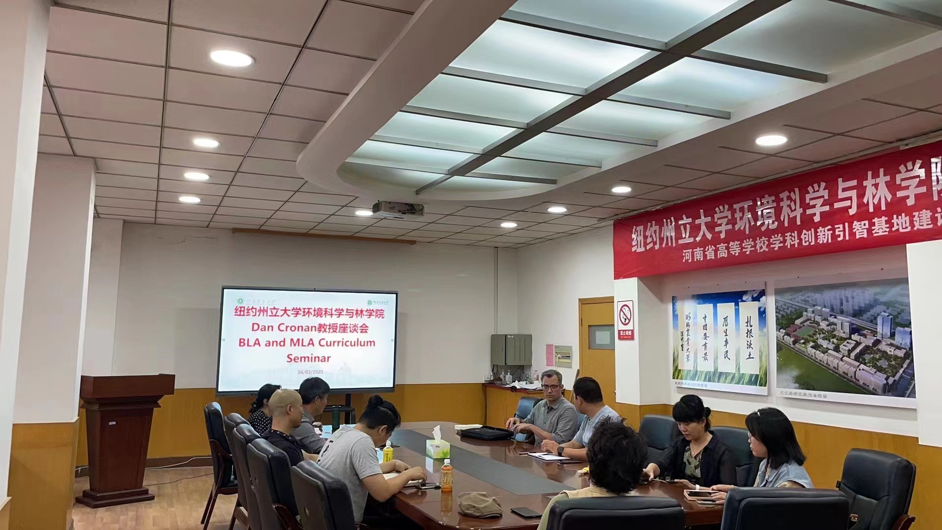 刘保国就风景园林系师资力量、科研团队、风景园林学科发展、课程体系建设等内容进行了详细介绍;宋培豪对社会服务与实践、实践项目、学生竞赛等内容进行了补充介绍。随后Dan Cronan教授详细阐述了纽约州立大学环境科学与林H动画 风景园林专业培养方案和课程体系。双方就风景园林专业本科教学课程体系建设中的人才培养、理论课程、实践环节、毕业设计等内容进行了激烈探讨。