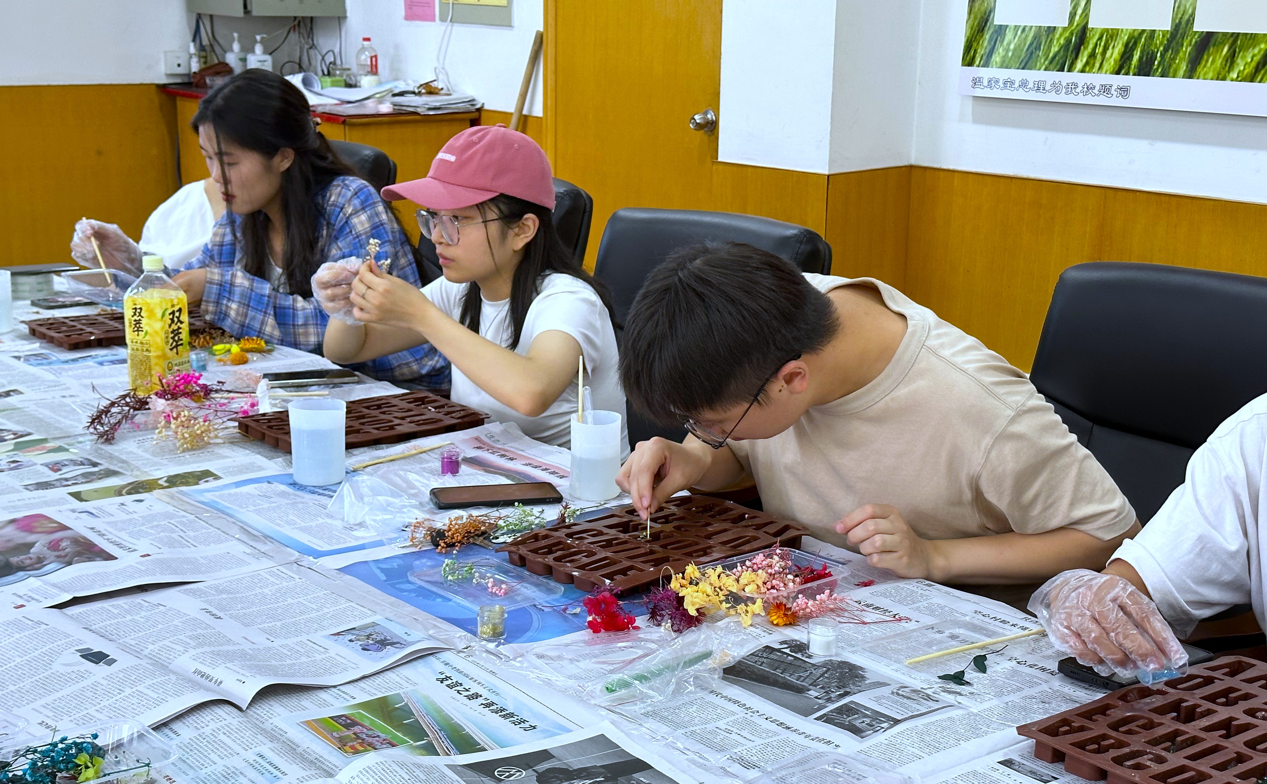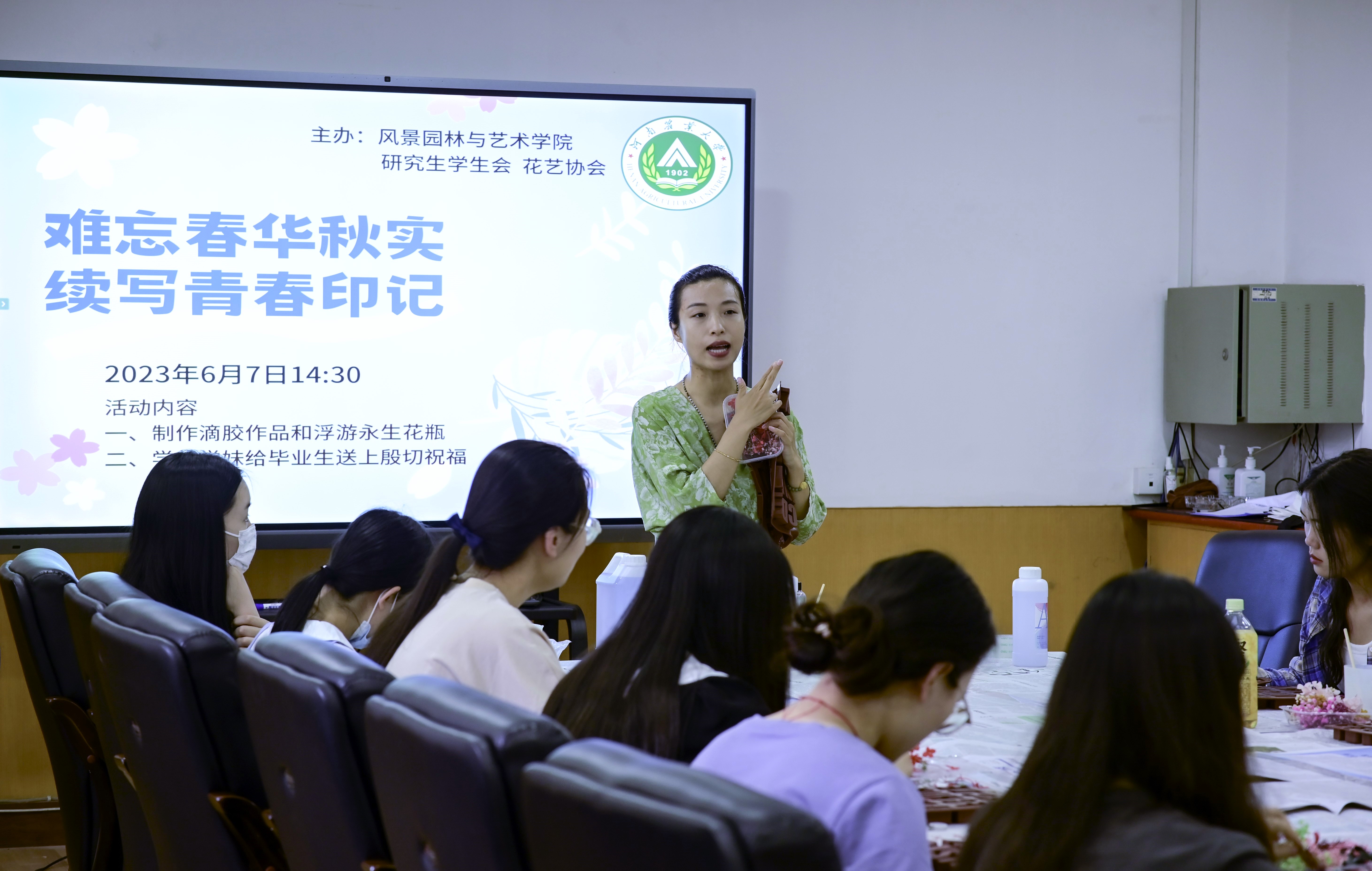 活动开始,首先由花艺协会负责人介绍了不同类型的花卉,然后石力匀老师向同学们讲述作品的制作方法和注意事项,耐心为同学们讲解制作过程可能出现的问题。活动期间同学们都在认真制作自己的滴胶和浮游瓶,想要通过亲手制作的作品向毕业生传达美好祝愿。最后同学们写下对师兄师姐的寄语,将收到的手工作品转交给毕业生们,让景艺毕业学子们可以带着学弟学妹的祝福踏上成功之路。