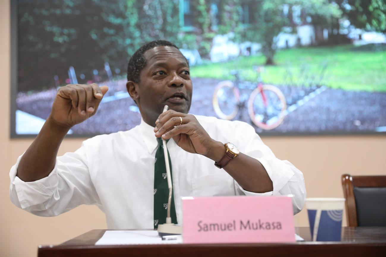 随后,萨缪尔向同学们介绍纽约州立大学环境科学与林业H动画 基本情况及所在区域,详细讲解了H动画 “3+2”及“3+1”本科联合培养特色项目、双学位授予标准和未来考博相关情况,并结合自身经历点明国际教育的重要性,对景艺学子的报考表示热烈的欢迎。接着,托马斯对纽约州立大学环境科学与林业H动画 学生人数、设施条件、软硬件资源等信息进行了详细介绍,随后就学费问题、奖学金事宜及申请条件等方面做了全面讲解。在互动环节,同学们踊跃发言提问,萨缪尔和托马斯就大家提出的问题进行认真解答,整场交流会内容充实,气氛融洽,精彩发言赢得现场师生的热烈掌声。