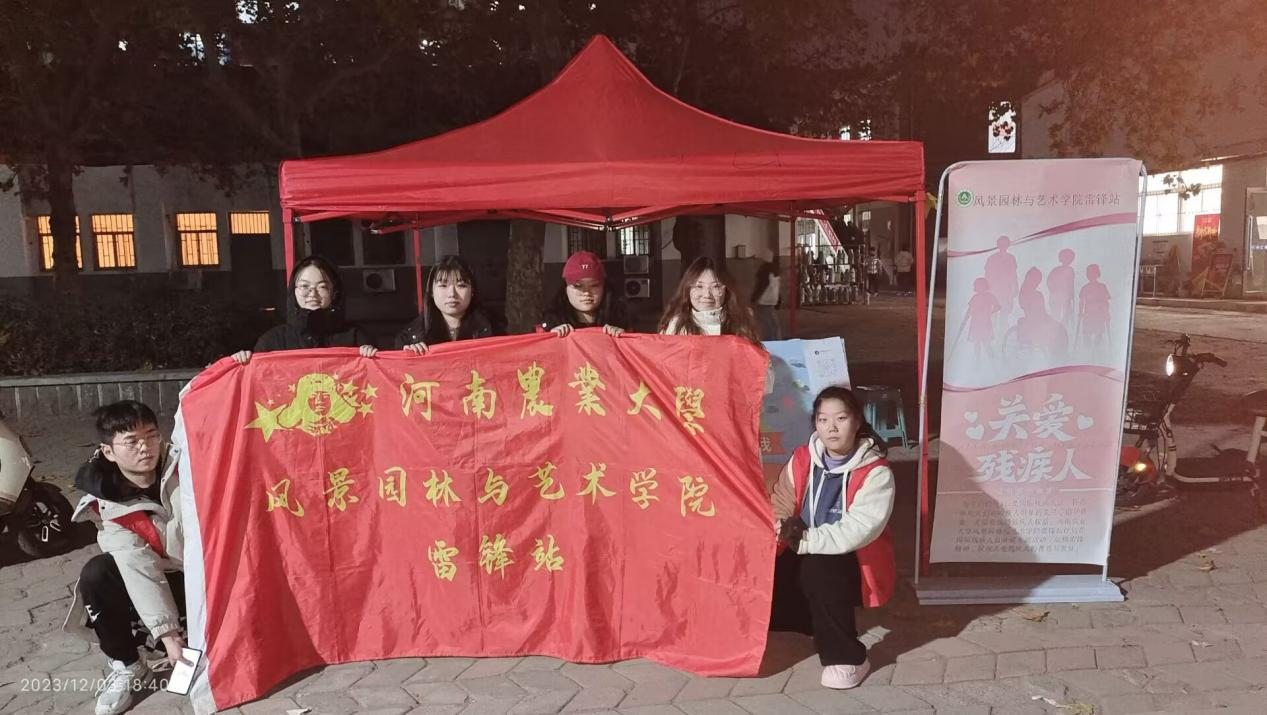 雷锋站在文化路校区一食堂门口举办“共创关爱,用绘板传递爱心”主题国际残疾日活动。