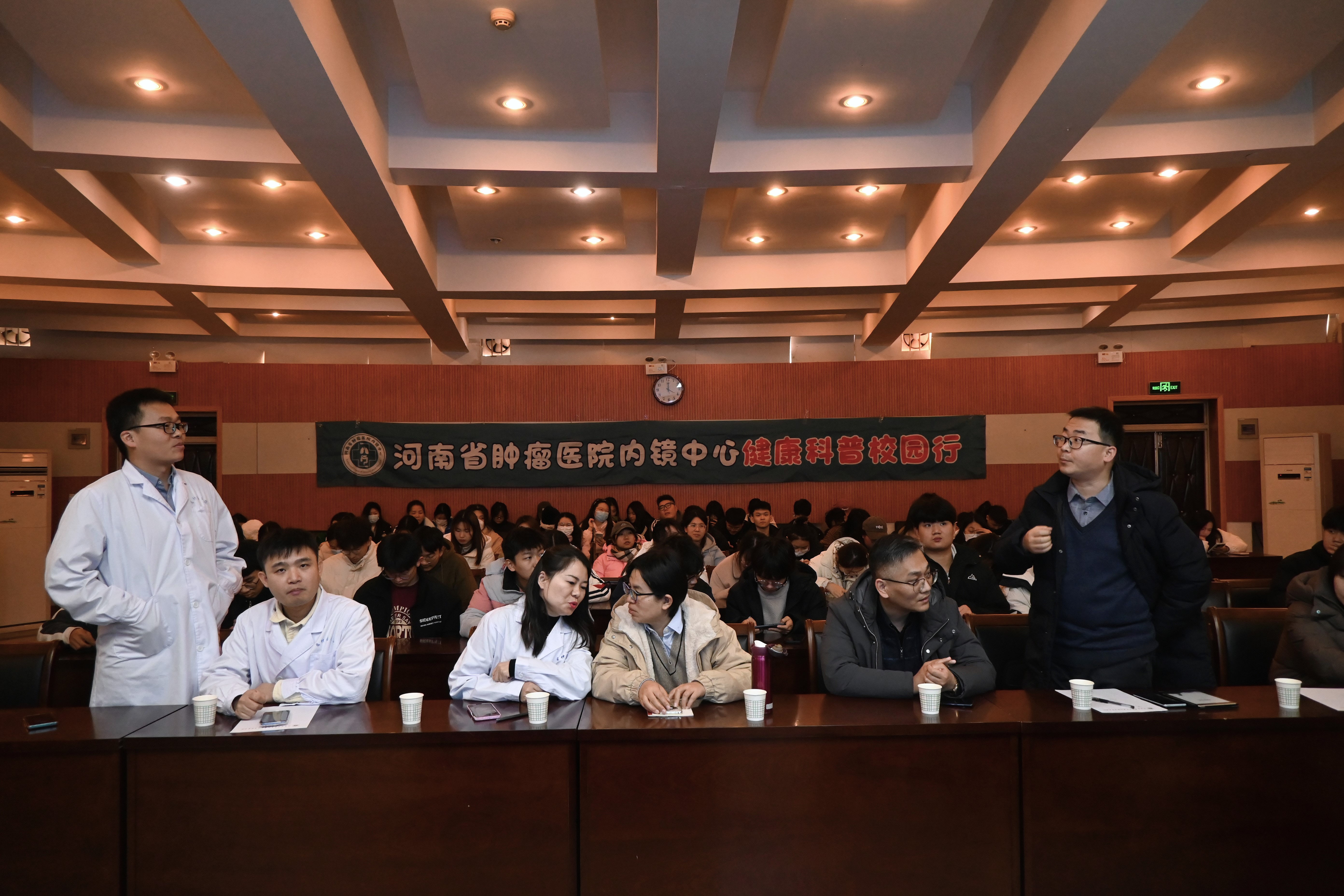 在互动环节,学生们围绕医学健康问题进行提问,河南省肿瘤医院的专家们对学生的问题进行了一一解答,大家纷纷表示受益良多。