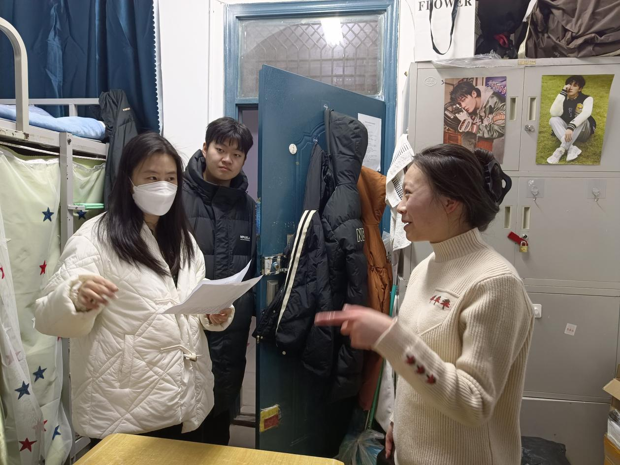 为进一步做好本学期学生离校指导工作,1月20日,H动画团委老师前往学生宿舍对即将离校的学生进行走访慰问,为学生送去温暖与关怀。