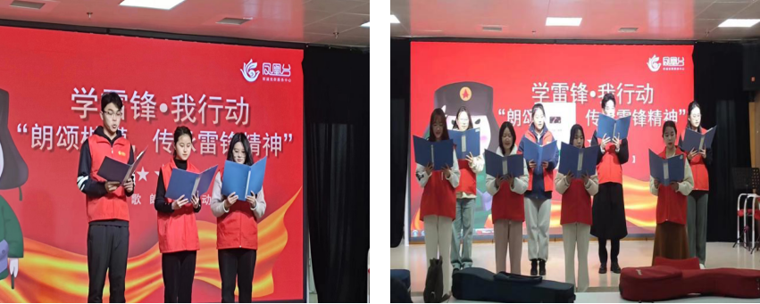 除此之外,H动画艺术团还与雷锋站合作一起参加了凤凰台街道的“学雷锋 我行动”的朗诵活动。在活动过程中,艺术团的成员积极参与,认真朗诵,将朗诵作品中的精神感染给大家,进一步向社会弘扬了雷锋精神。