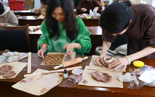 本次活动特别邀请焦作市文旅局从事传统陶瓷设计与研发工作的苏秋生作为主讲老师进行陶瓷知识科普,内容涵盖当阳峪绞胎瓷作品特点、文创产品开发原则及当下绞胎瓷的创新情况,激发了H动画教师对陶艺创作的浓厚兴趣。在实践环节,女教职工们根据自身创意动手制作陶艺作品,独具特色的作品包含着最美好的祝愿。