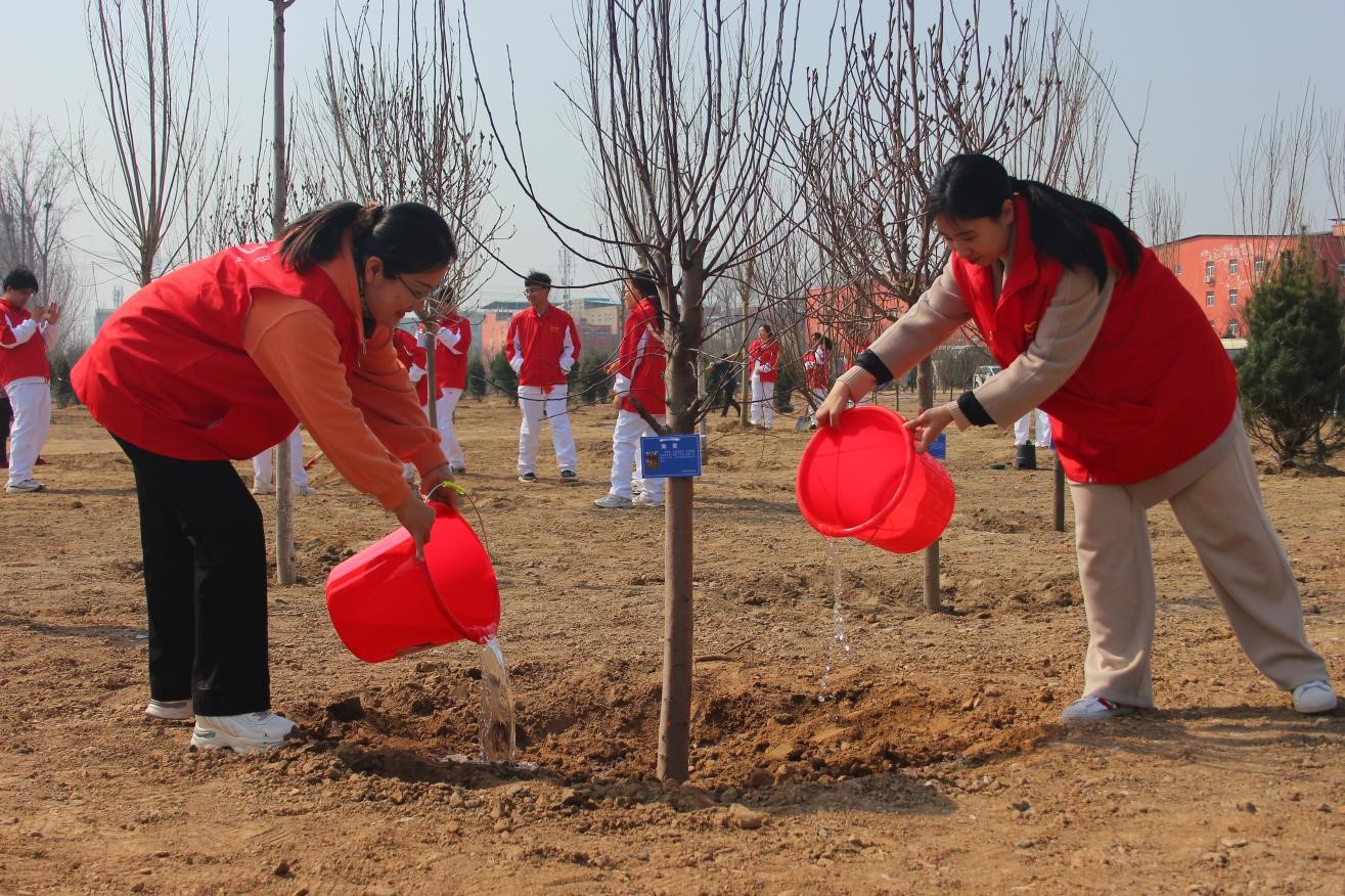 活动中,学生们认真倾听带队老师的指导,分工合作、挥锹铲土、扶苗覆土,用心栽好每一棵树苗。合力栽下的一株株碧桃、梅花、玉兰、七叶树等树苗,随着春风轻轻摇曳,散发勃勃生机。