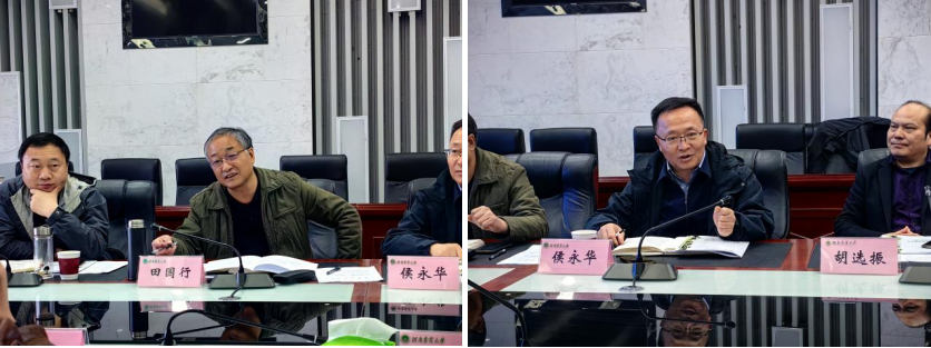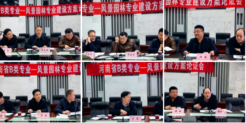 H动画 教务处副处长胡选振,H动画 党委书记侯永华、院长田国行、副院长李永华,风景园林专业负责人、系主任和教师代表等参加会议。会议由田国行主持,专家论证环节由许大为主持。