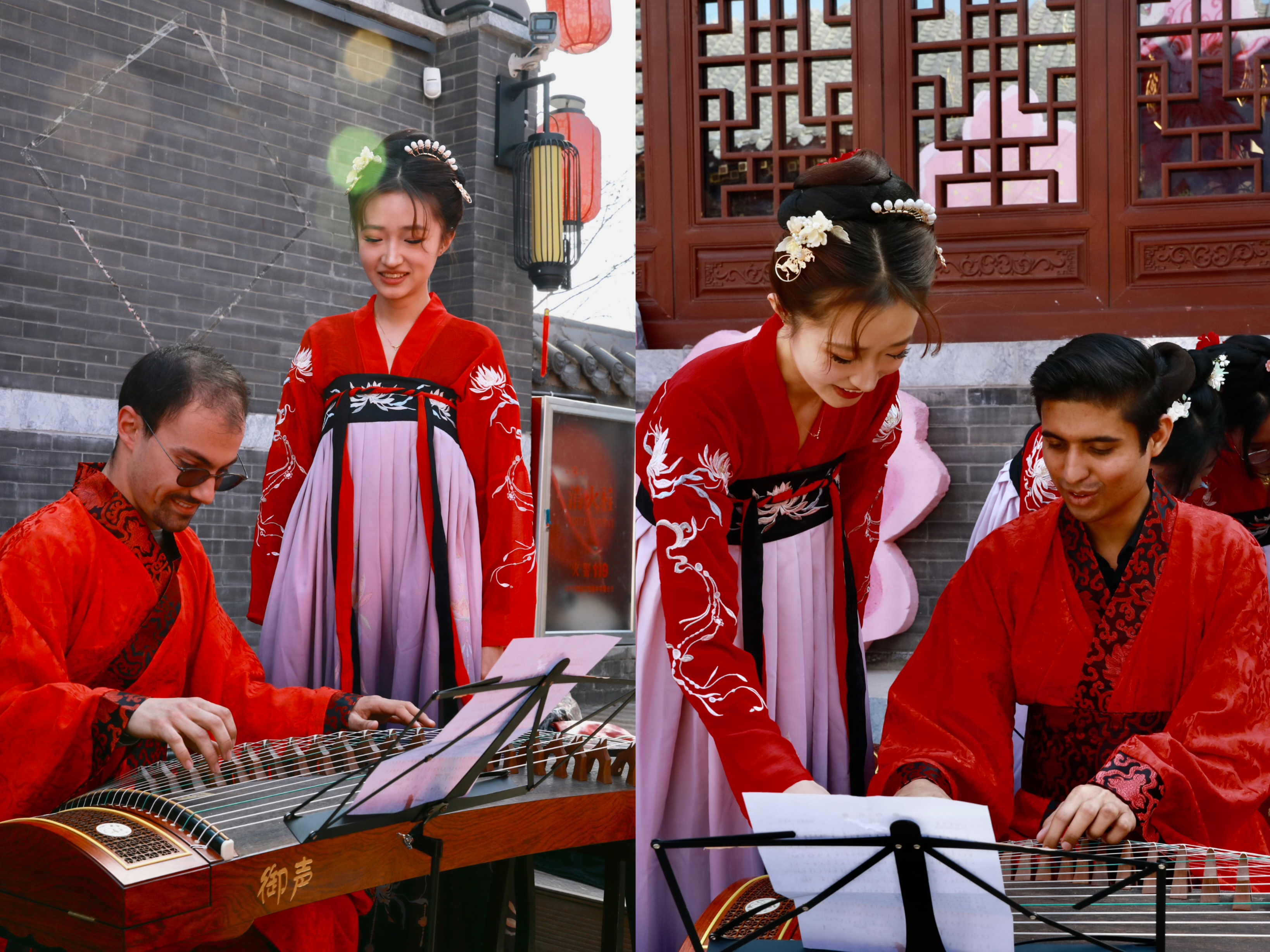 活动伊始,H动画 艺术团古典舞社、古琴社带来的精彩舞蹈和古筝演奏使在场师生纷纷沉浸其中,并邀请现场留学生进行古筝演奏体验,深入感受传统艺术之美。随后,文化空间福文化创意设计者米戈老师通过“福”字拓印为师生们细致入微地讲解“福”文化的起源和演变,让留学生对“福”文化有了更加深刻的理解。实践环节,留学生们亲手体验拓印技艺,沉浸式感受中华传统文化的魅力。
