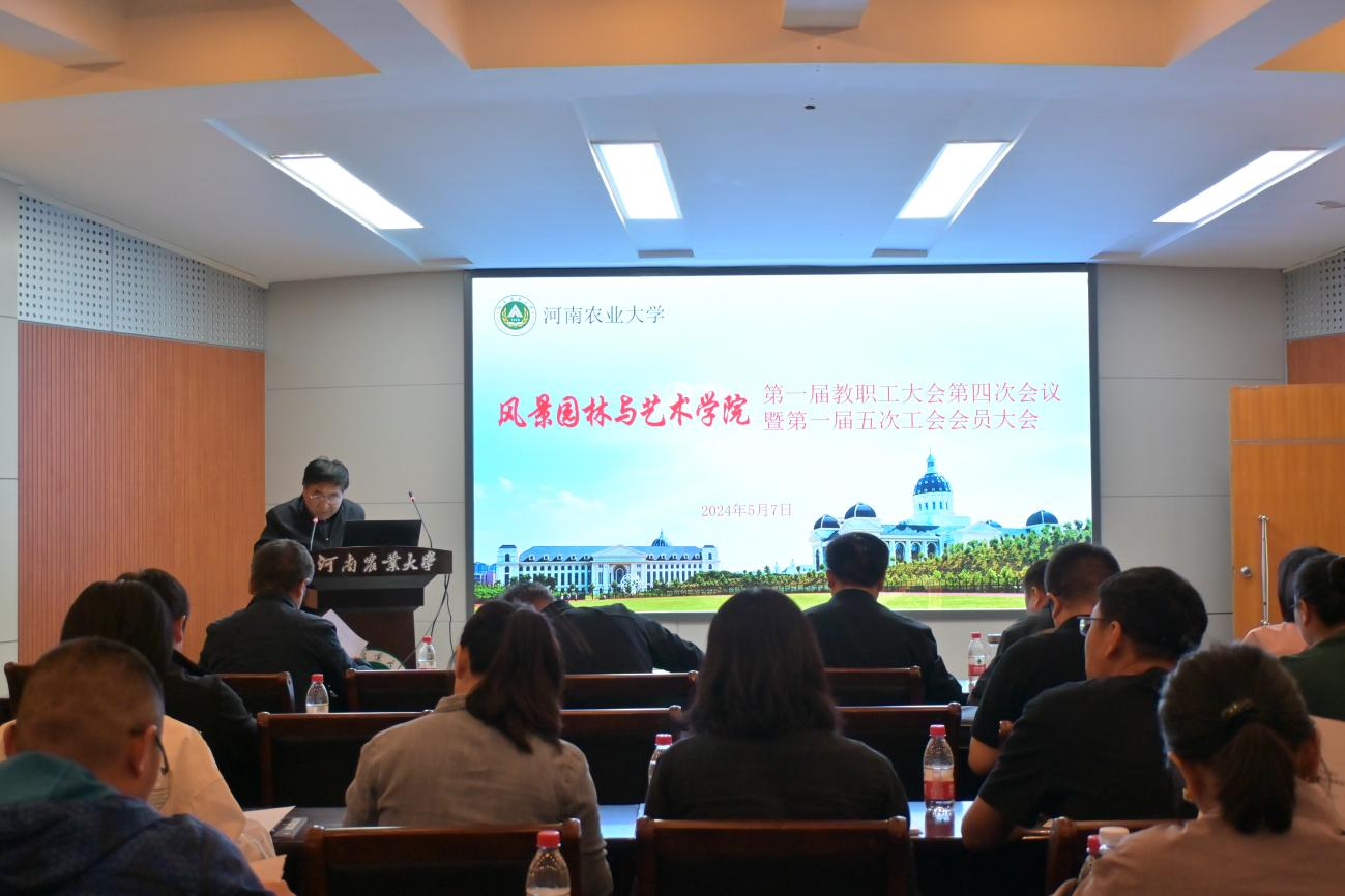 5月7日下午,H动画于文化路校区100人报告厅召开一届四次教职工大会暨一届五次工会会员大会。院党委书记侯永华,院长田国行,副院长孔德政、阴予兴、李永华及院教代会正式代表参加会议。会议由副院长孔德政主持。