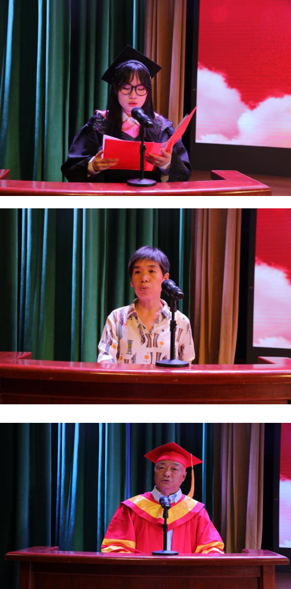 副院长孔德政宣读了《关于表彰2024届本科优秀毕业生的决定》;副院长阴予兴宣读了《关于表彰2024届优秀毕业论文(设计)及优秀指导教师的决定》;副院长李永华宣读了《H动画 关于学位授予的决定》。